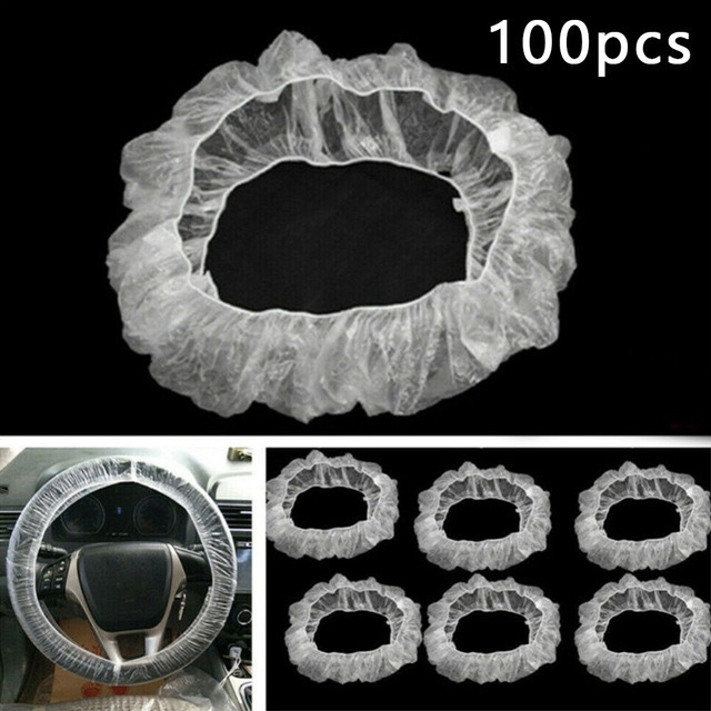 100pcs 자동차 스티어링 휠 커버 일회용 스티어링 휠 커버 방진 자동 수리 및 유지 보수 플라스틱 스티어링 휠