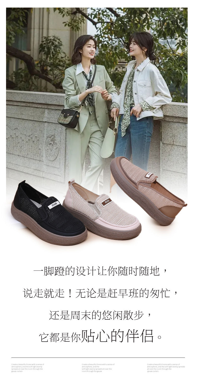 2025 여름 새로운 여성 신발 두꺼운 밑창 경량 캐주얼 신발 싱글 레이어 신발 유행 올매치 통기성 미끄럼 방지 슬립 온 여성 신발스토어 가기