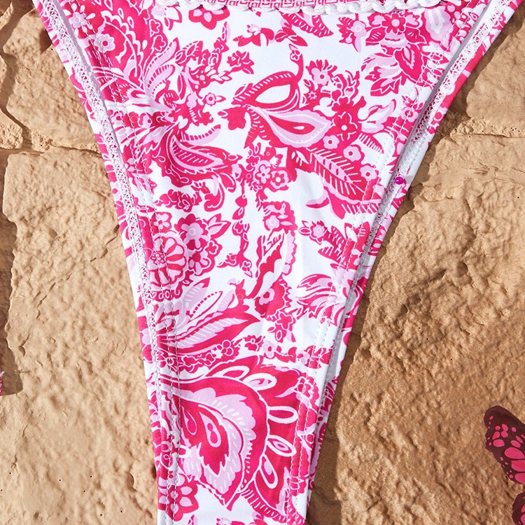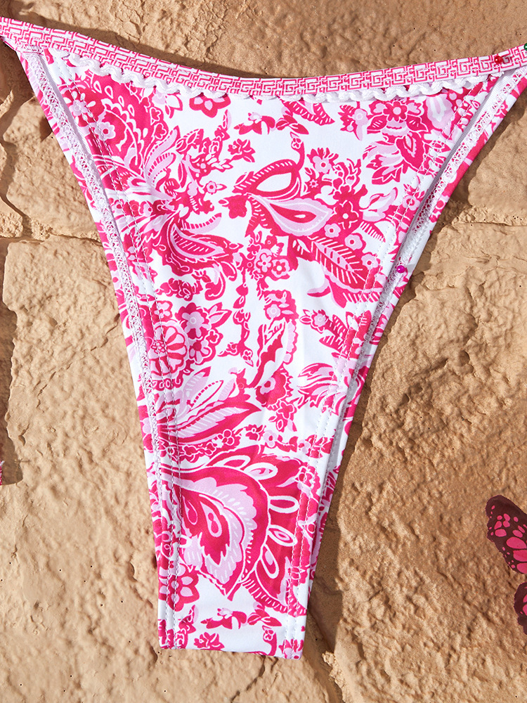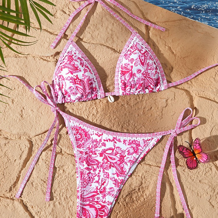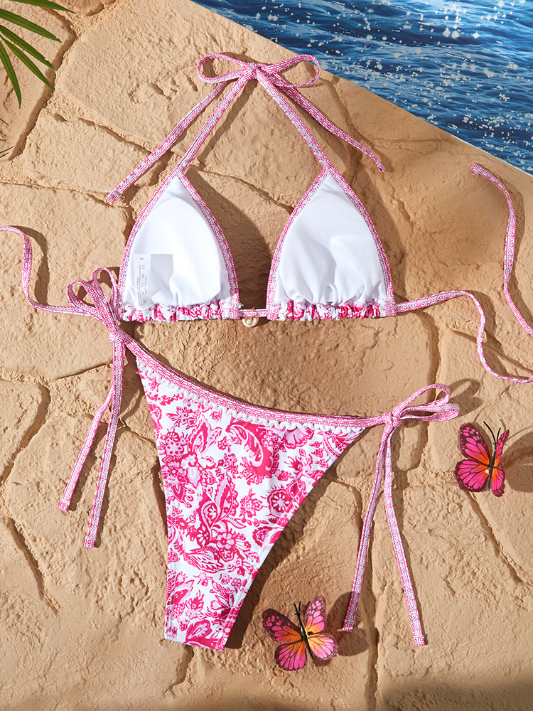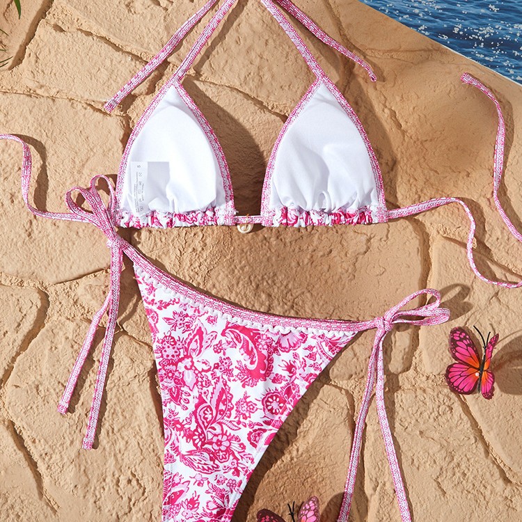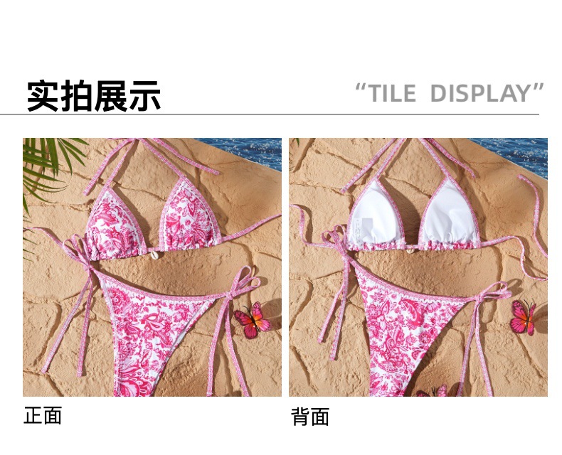 새로운 스타일의 여성용 분리형 수영복, 유럽과 미국에서 인기 있는 청화자기 프린트, 끈으로 묶는 섹시 비키니