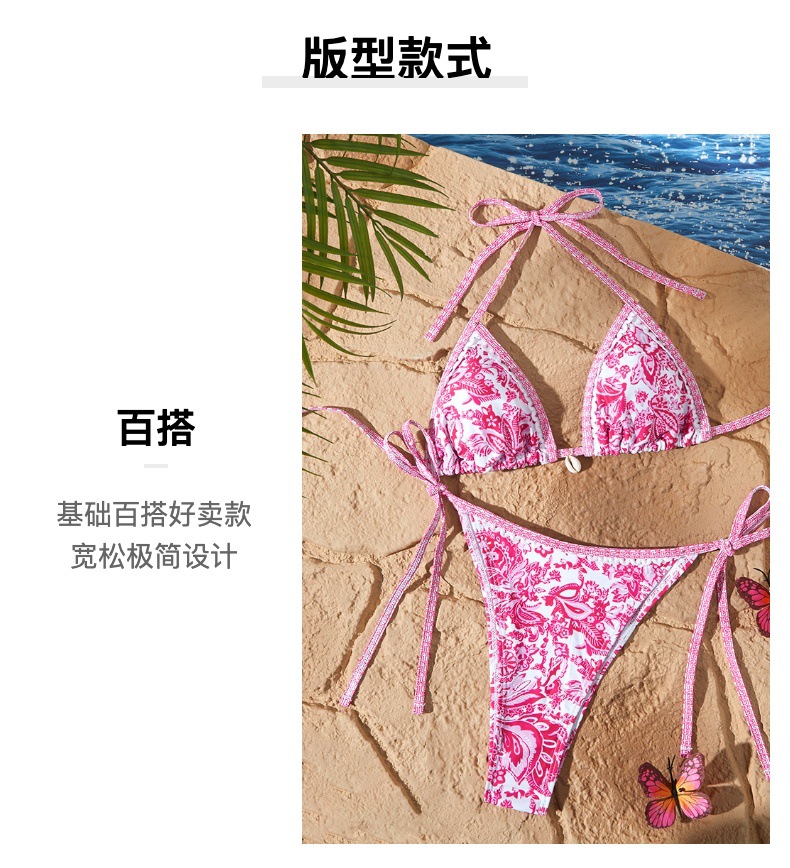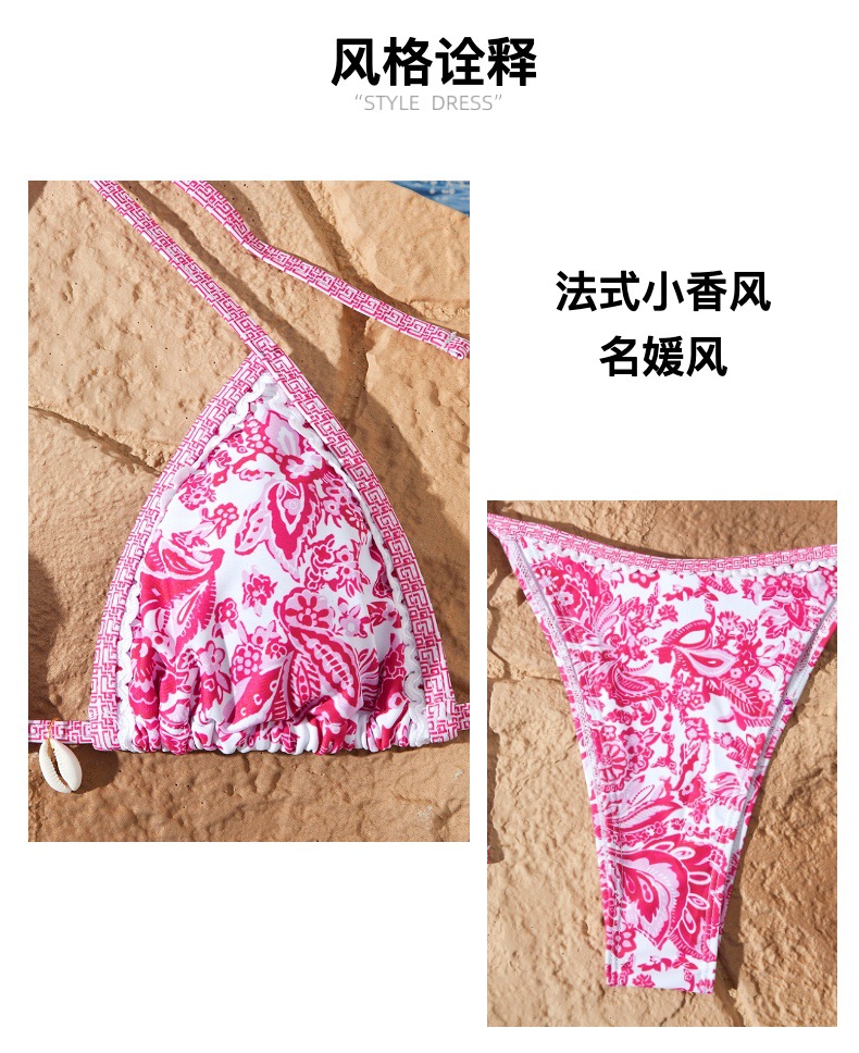 새로운 스타일의 여성용 분리형 수영복, 유럽과 미국에서 인기 있는 청화자기 프린트, 끈으로 묶는 섹시 비키니스토어 가기