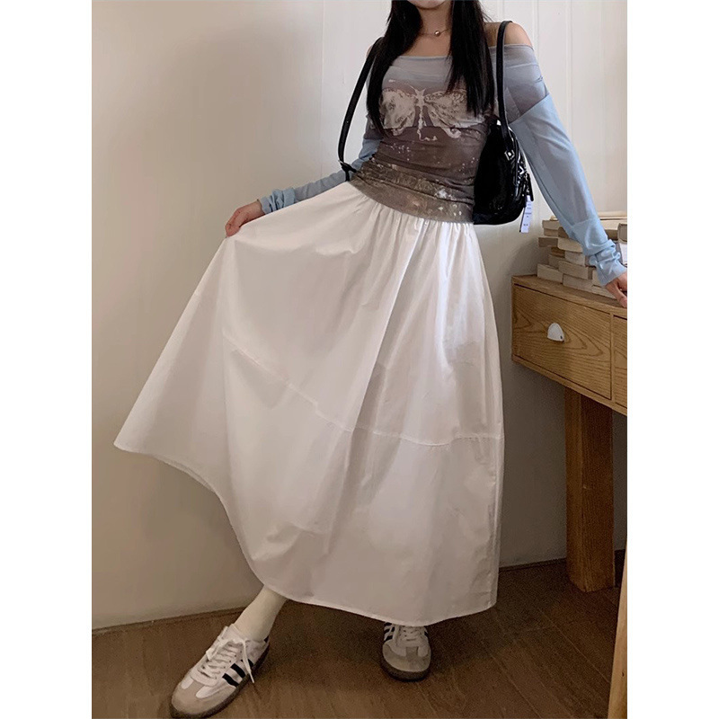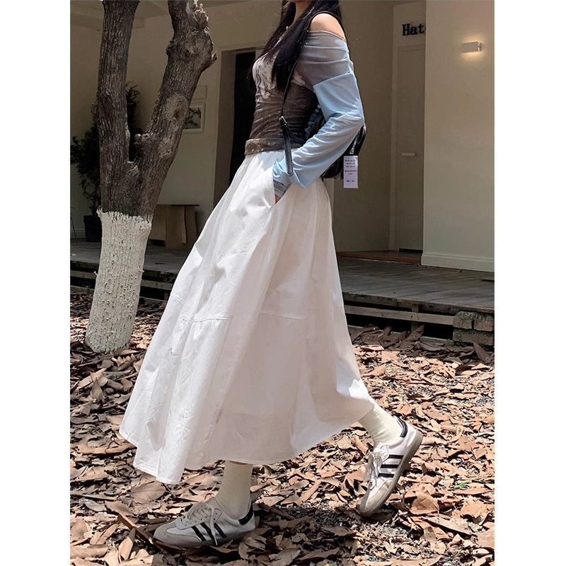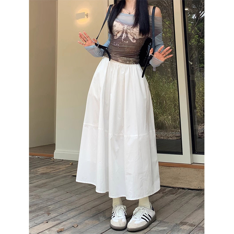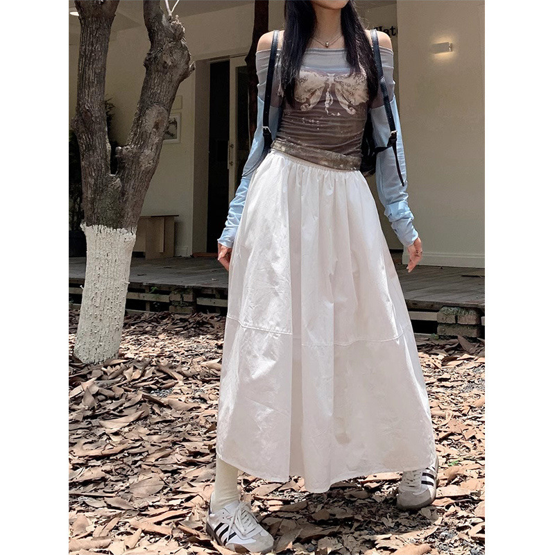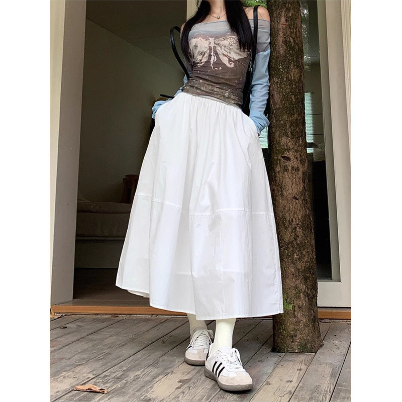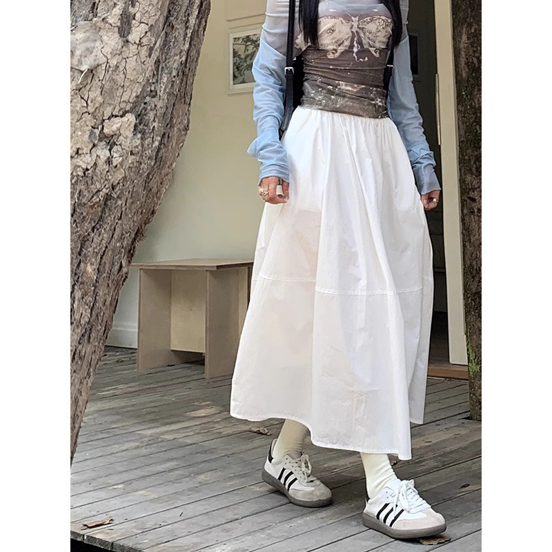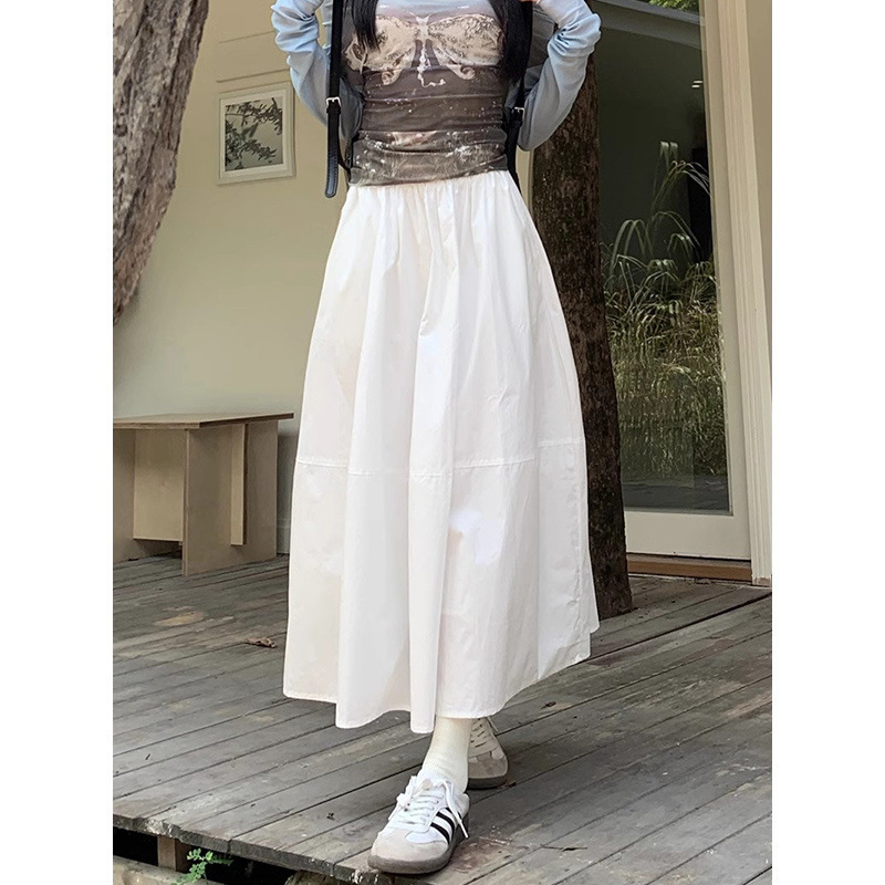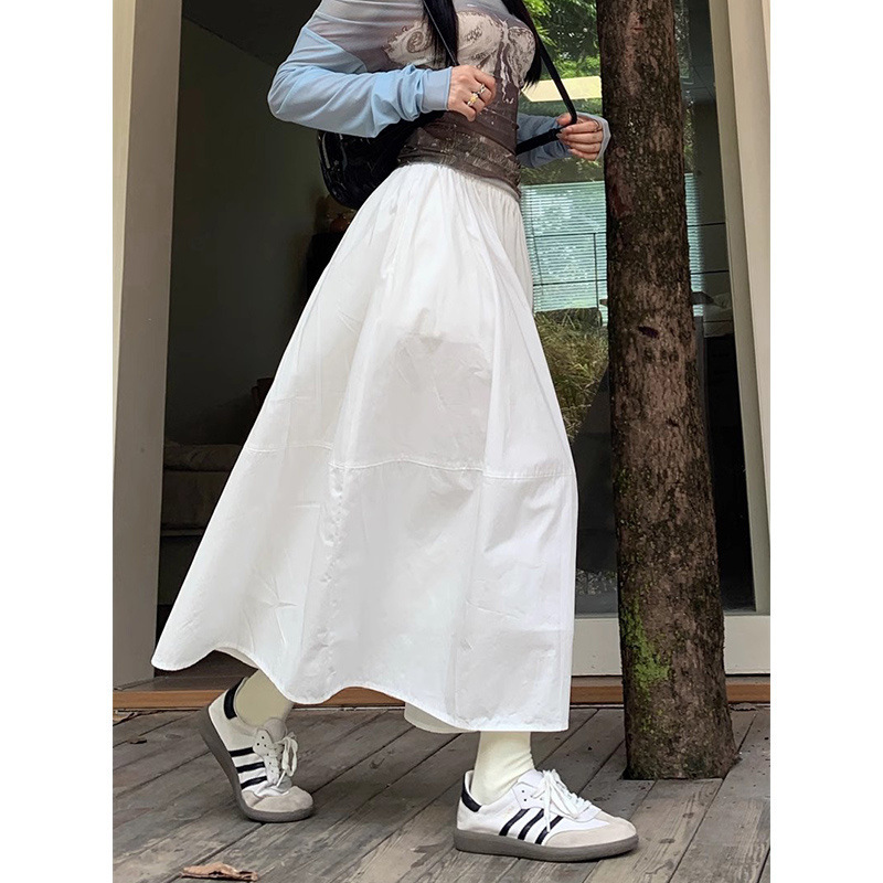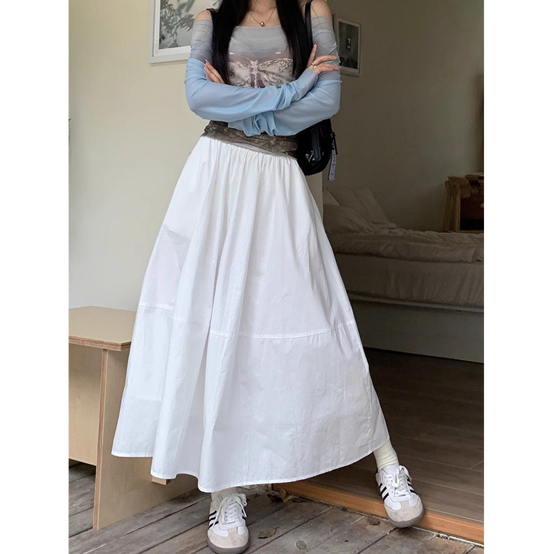 순면 화이트 스커트 여성의 여름 2025 새로운 스타일 dape 대형 스윙 스커트 높은 허리 슬림 A 라인 스커트 중간 길이 스커트스토어 가기