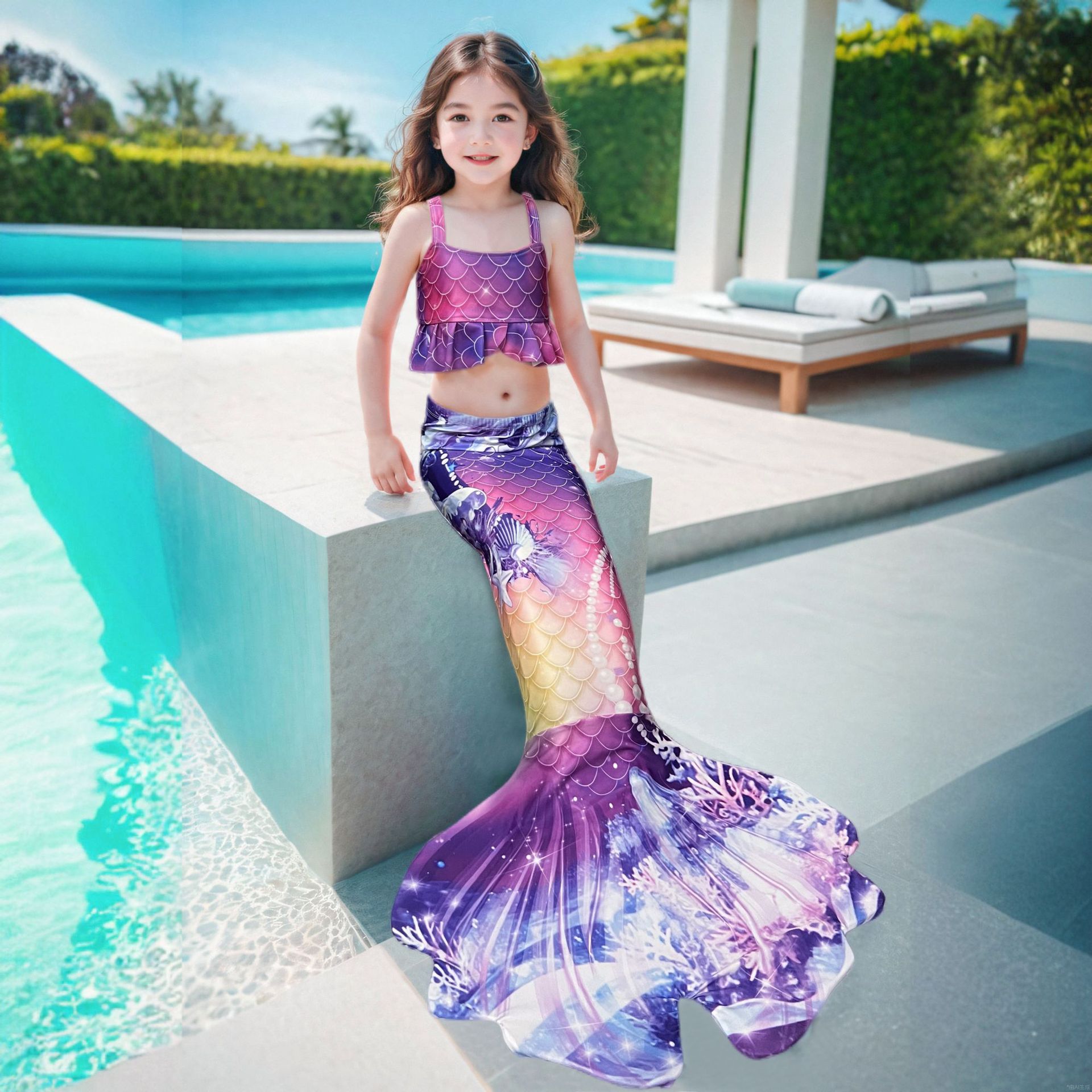 인어 어린이 수영복 하이 퀄리티 인어 꼬리 새 여아 3 피스 국경 온천 부모-어린이 수영복