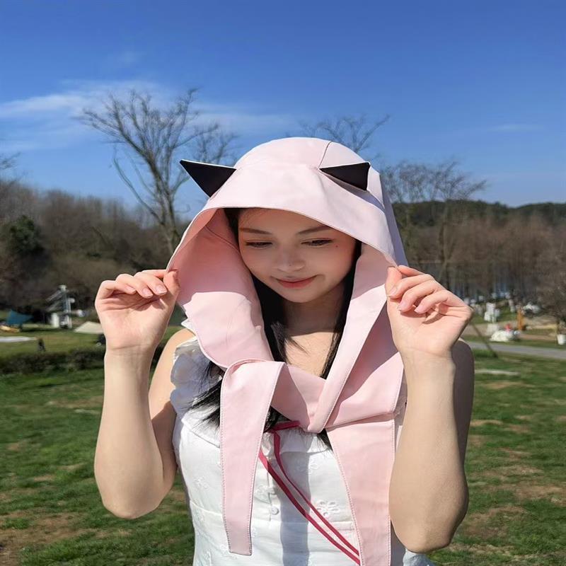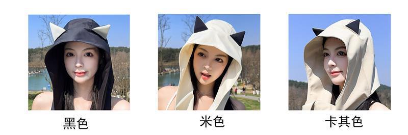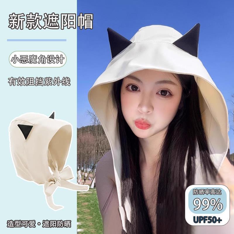 2025 봄과 여름 새로운 태양 모자 여성 귀여운 작은 악마 뿔 얼음 실크 태양 보호 모자 여행 및 쇼핑 UV 보호스토어 가기