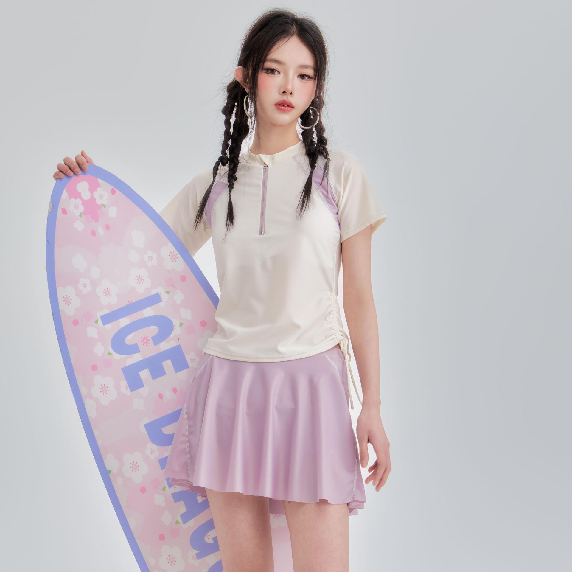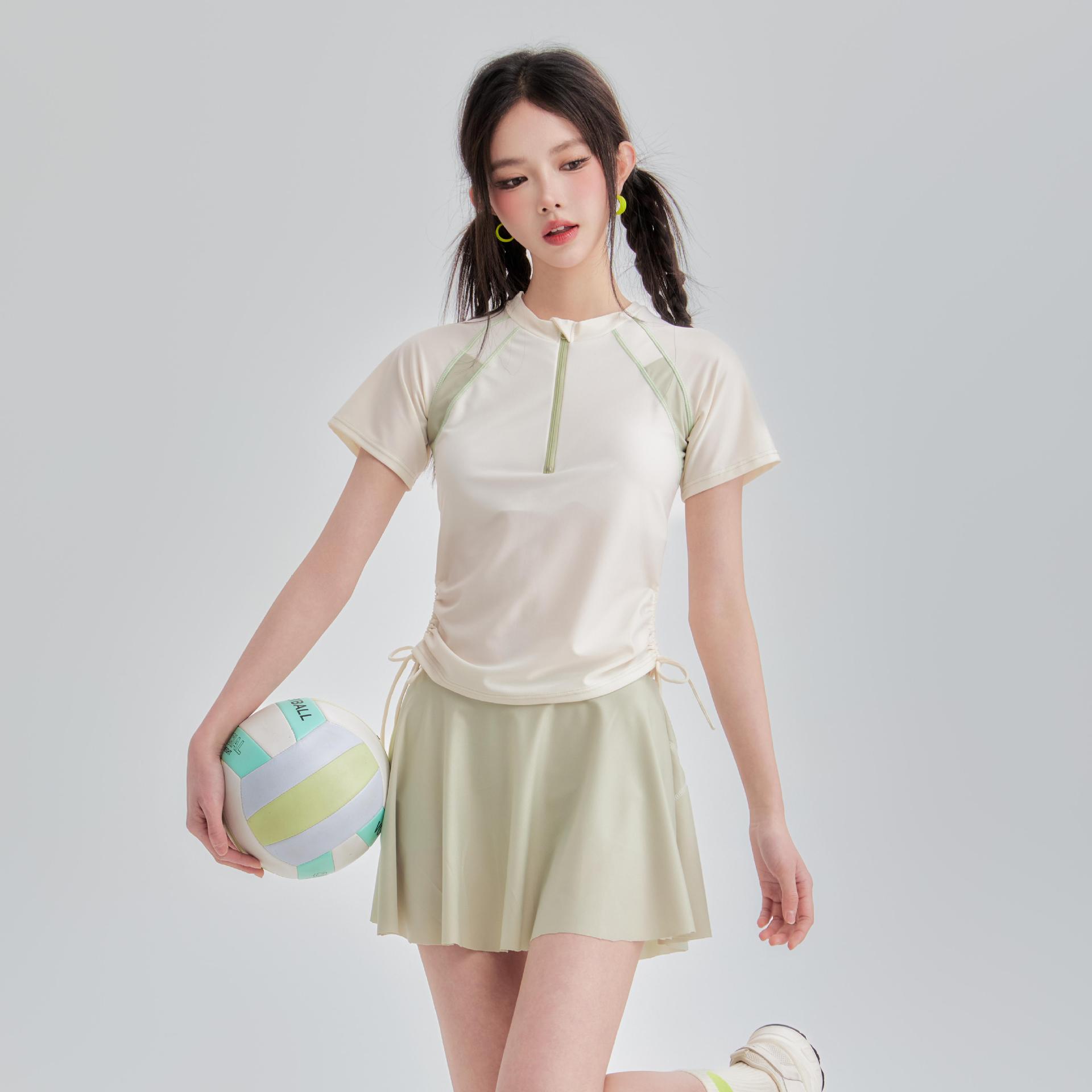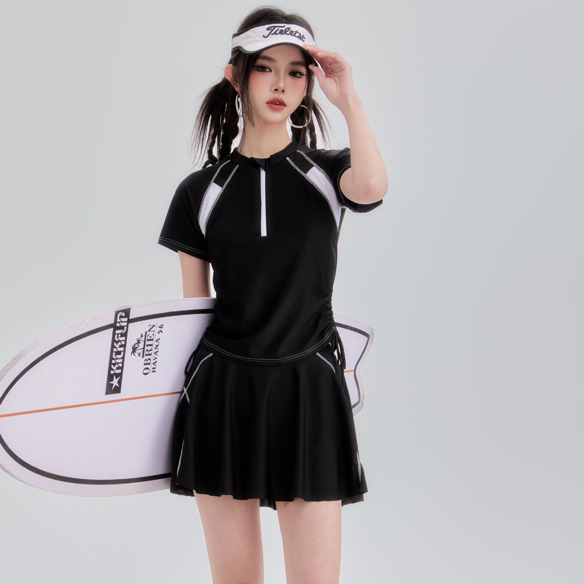 새로운 폴리 에스터 스포츠 스플릿 수영복 패션 테니스 스타일 한국 학생 스커트 복서 수영복 여성 수영복