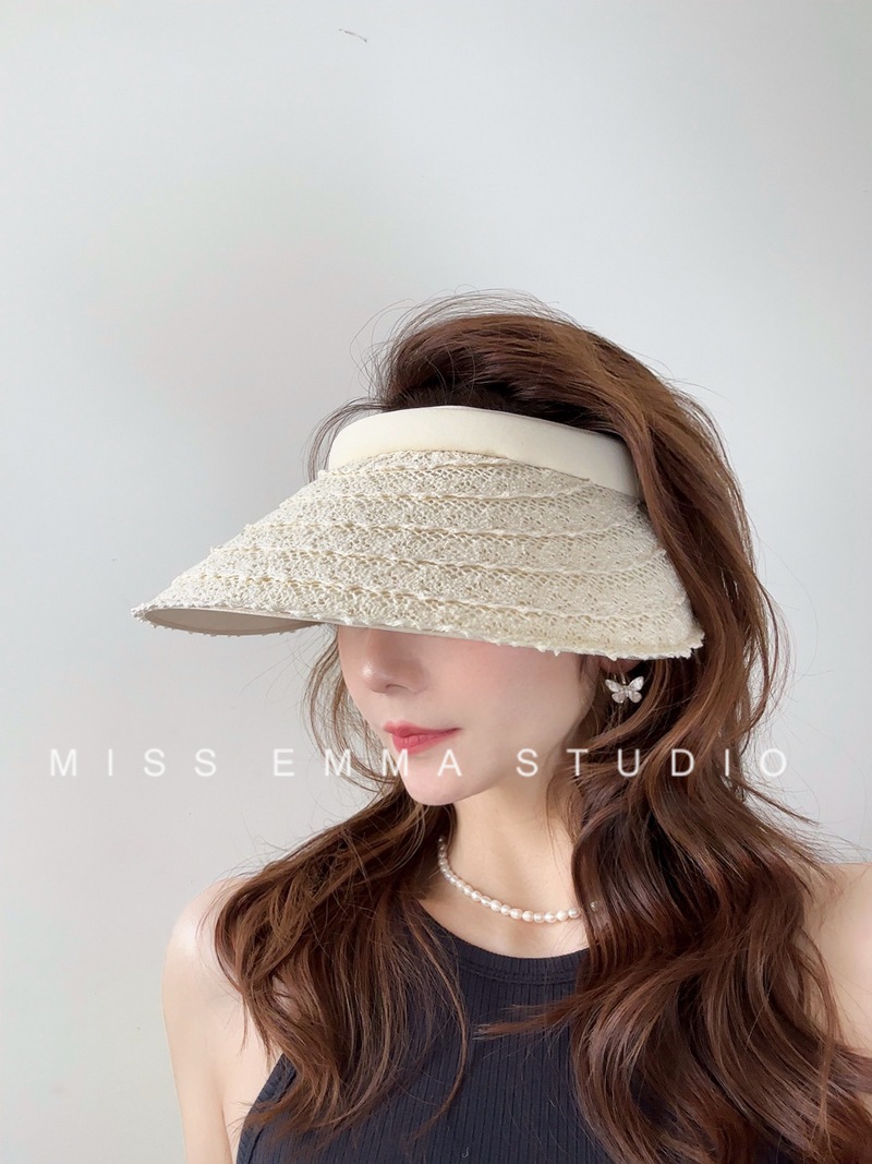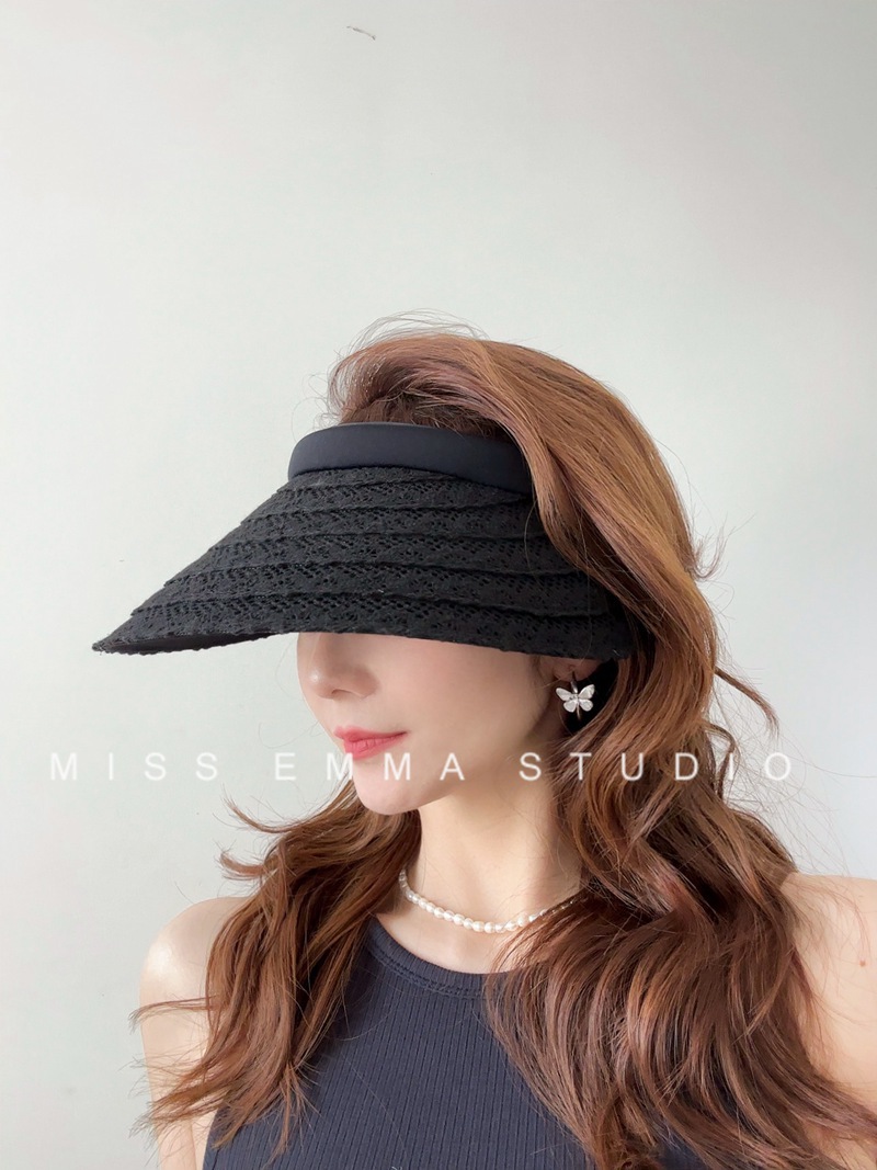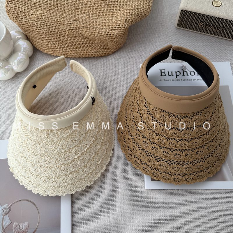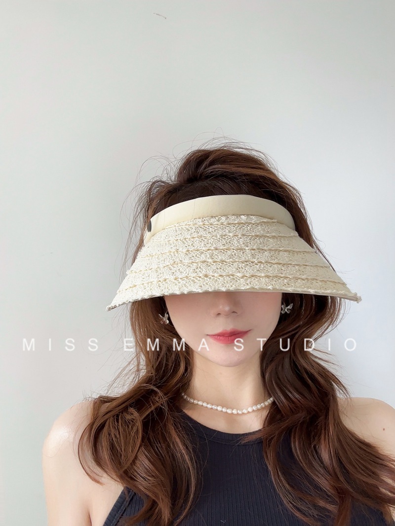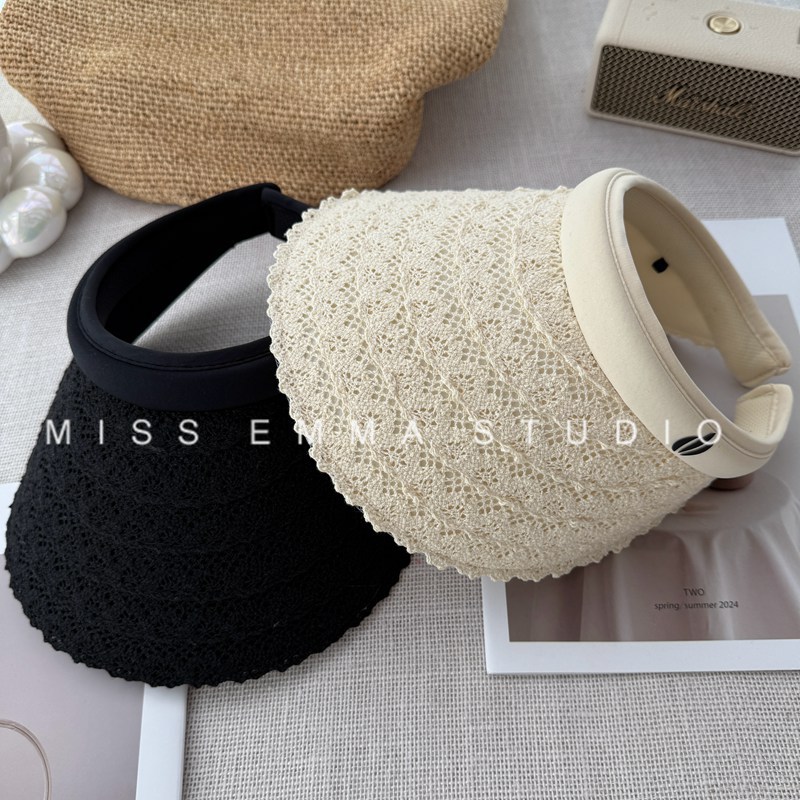 여름 레이스 빈 탑 모자 여성의 2025 새로운 해변 비치 큰 브림 헤어 밴드 햇빛 햇살 모자스토어 가기