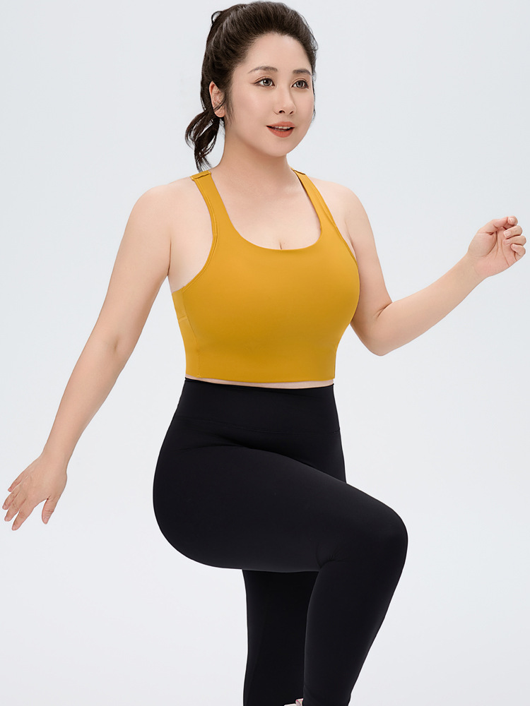 새로운 할로우 백 플러스 사이즈 스포츠 속옷 풀 컵 요가 조끼 얇은 피트니스 브라 고강도 충격