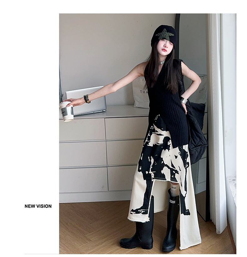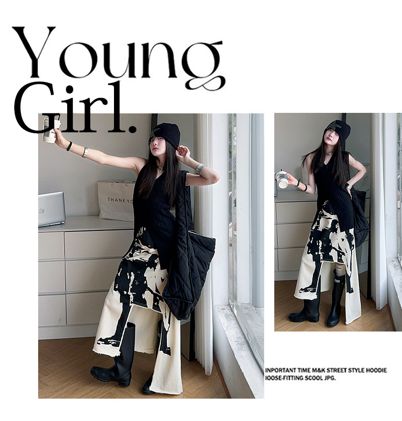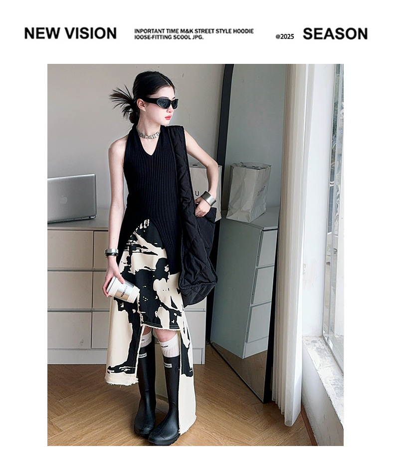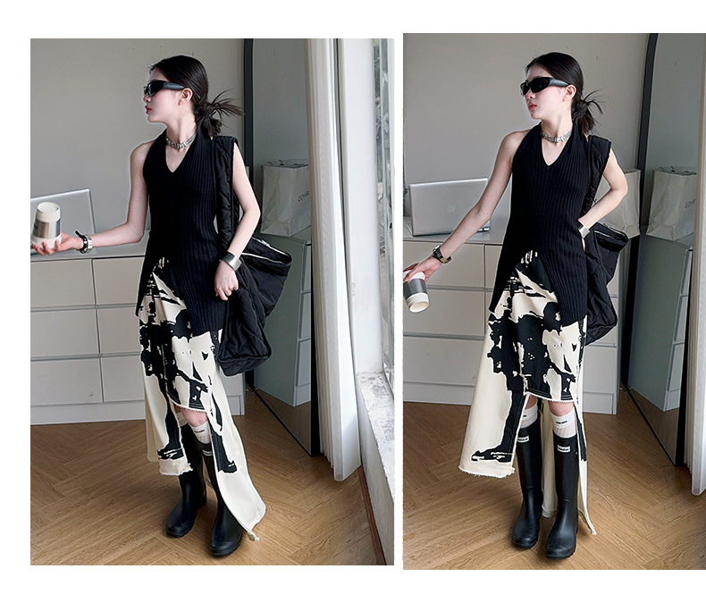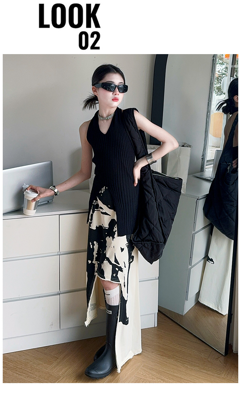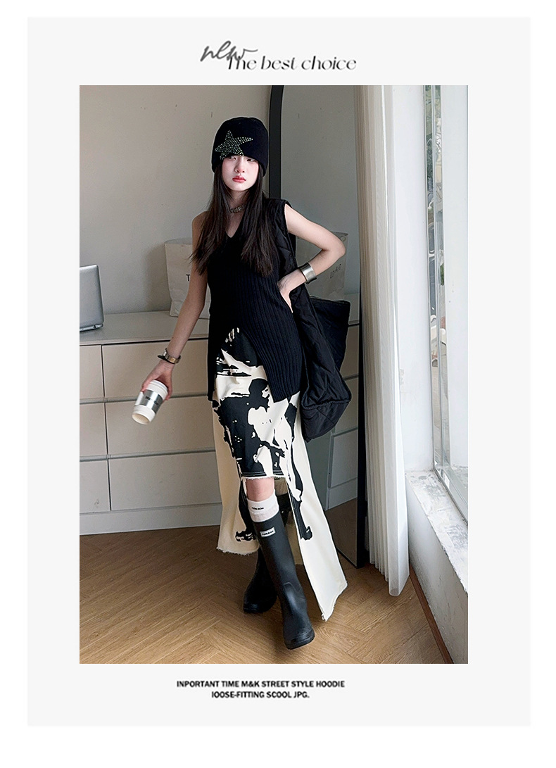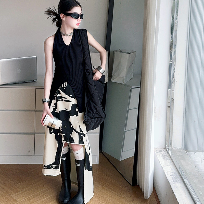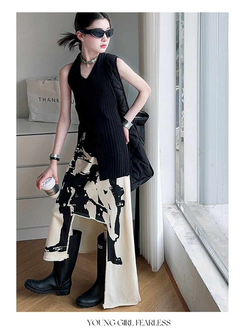 소녀 한국 스타일 세련된 분할 인쇄 치마 세트 미드 빅 어린이 세련된 민소매 티셔츠 스커트 2025 여름 뉴스토어 가기