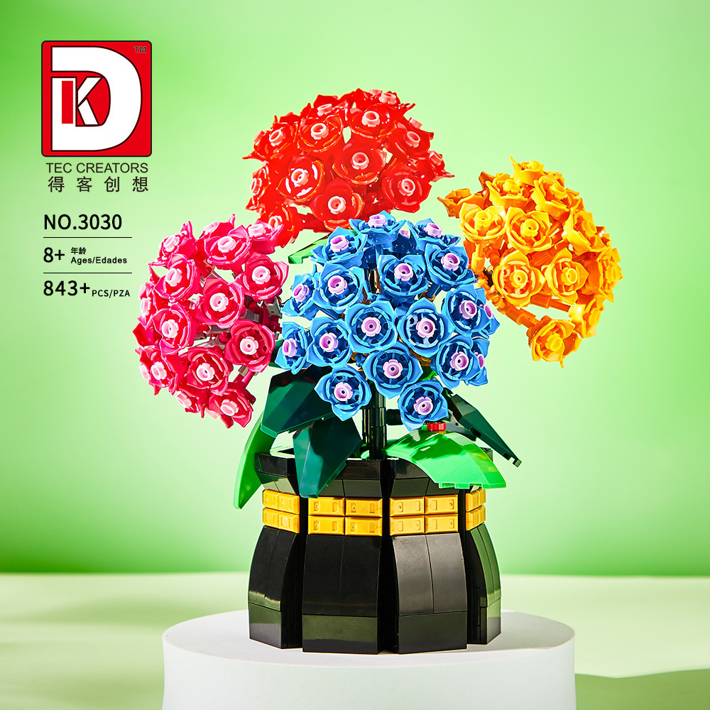 Deke Chuangxiang 3026 식물 꽃다발 장미 작은 입자 빌딩 블록 조립 장난감 장식품 선물 소녀 장난감