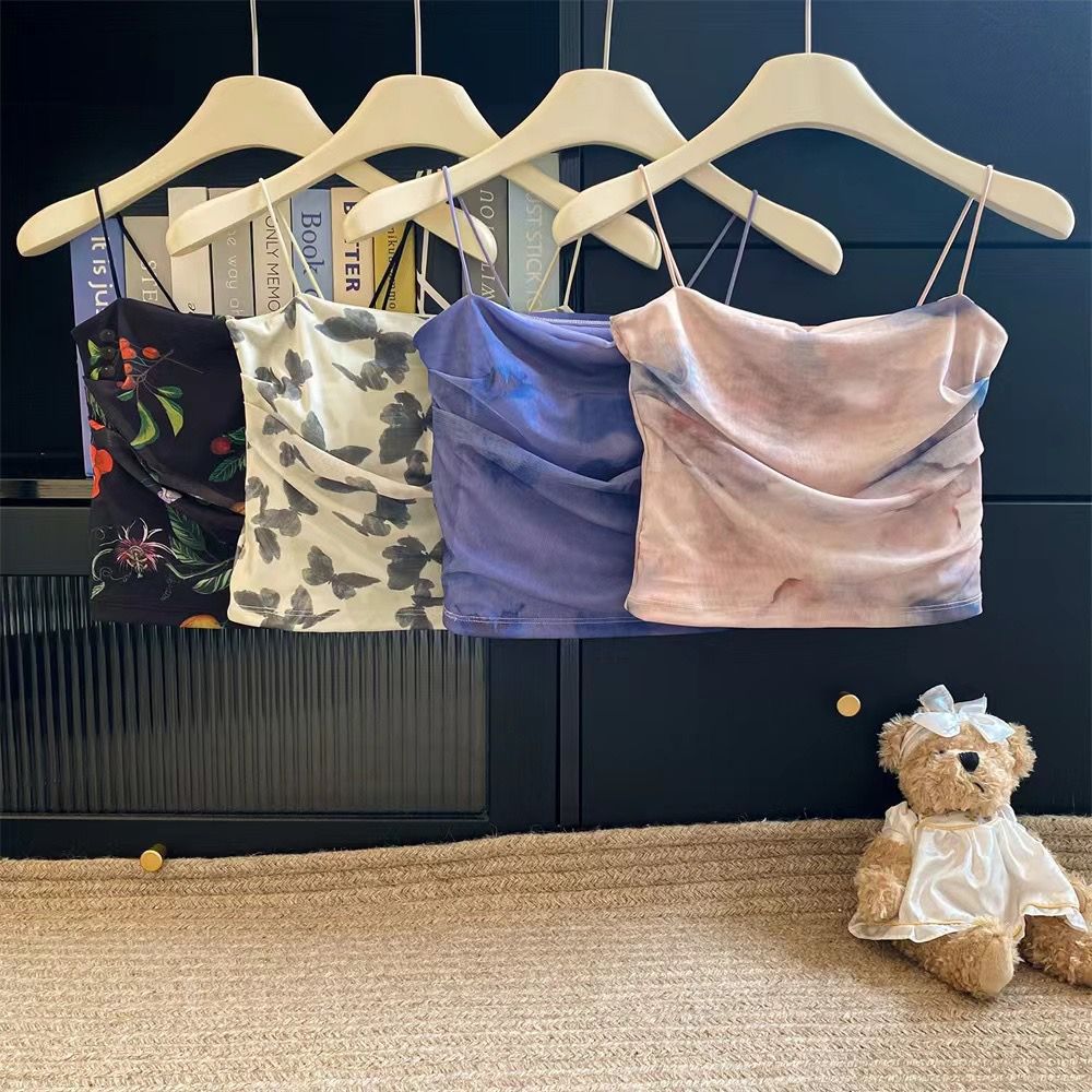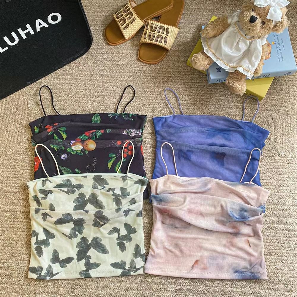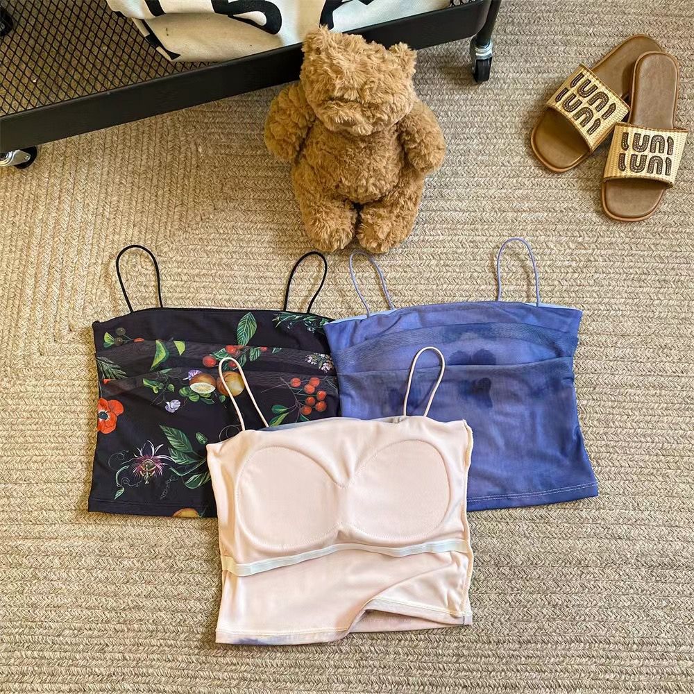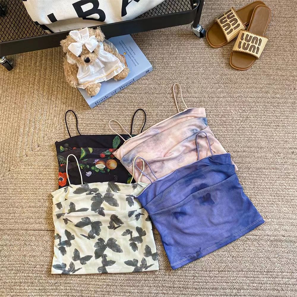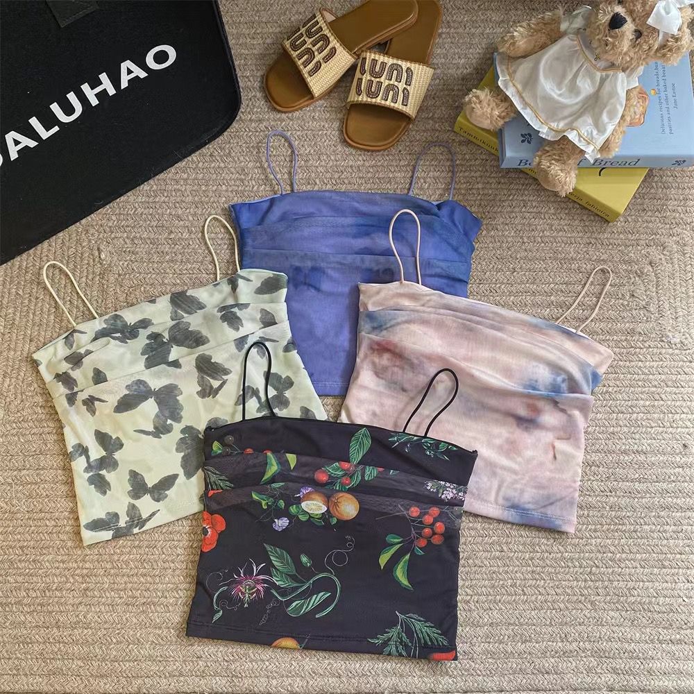 아메리칸 핫걸 스트레치 타이다이 메쉬 유화 스타일 캐미솔 여성용 가슴 패드 포함, 아름다운 등, 이너웨어 및 아우터웨어 트렌디 탑스토어 가기