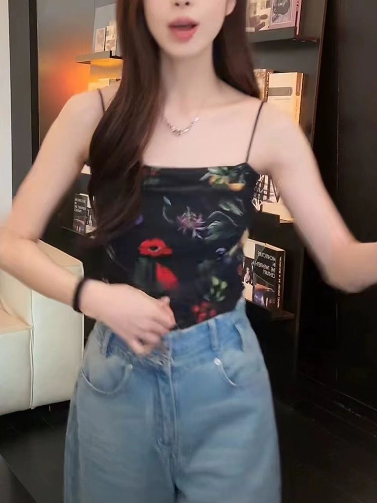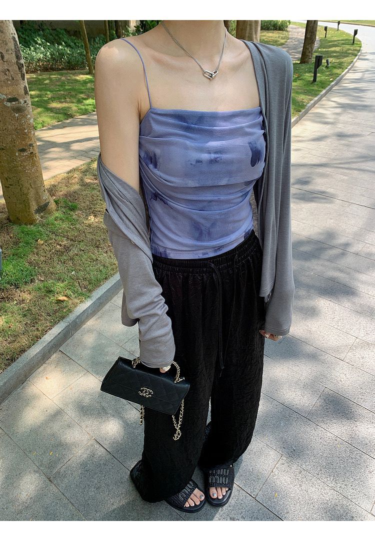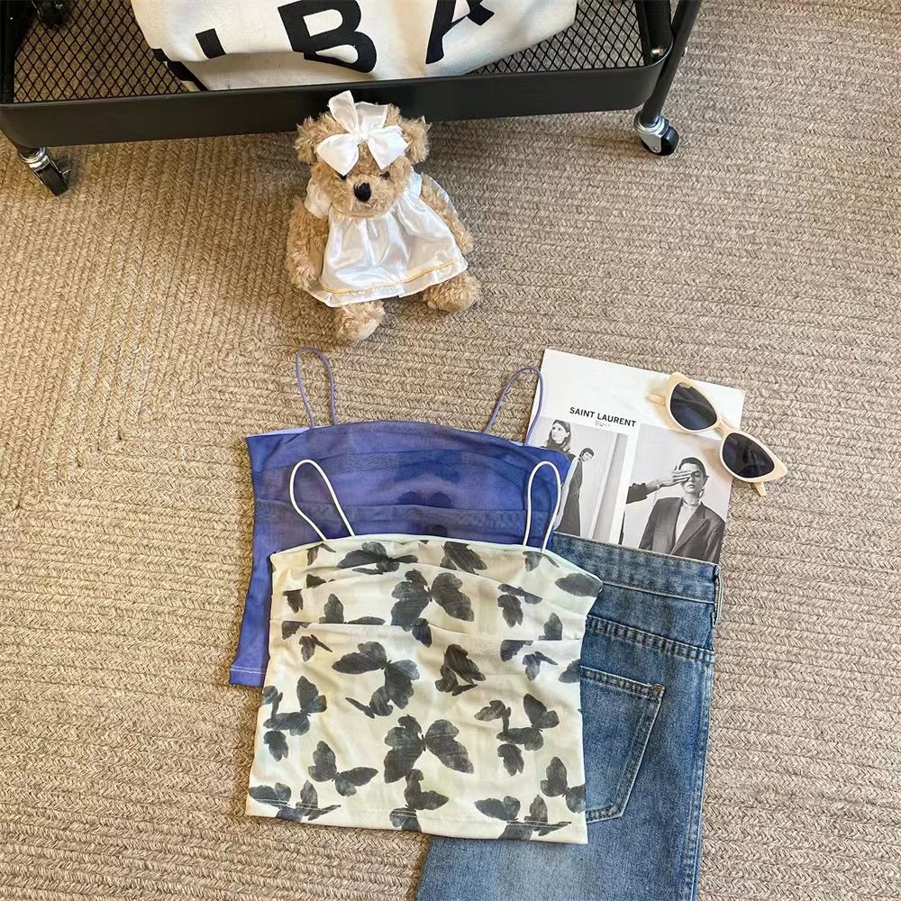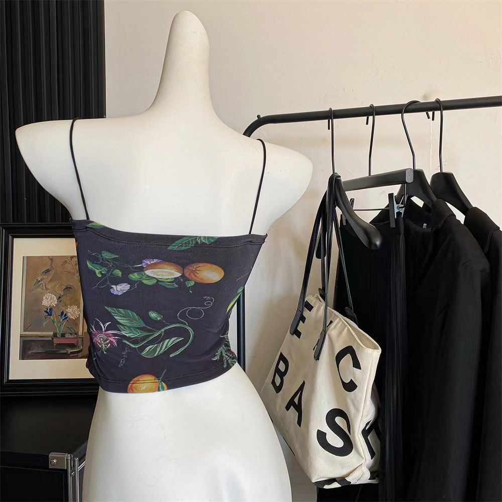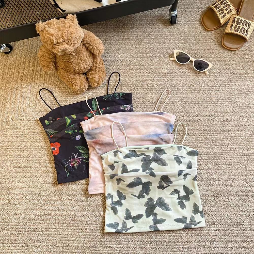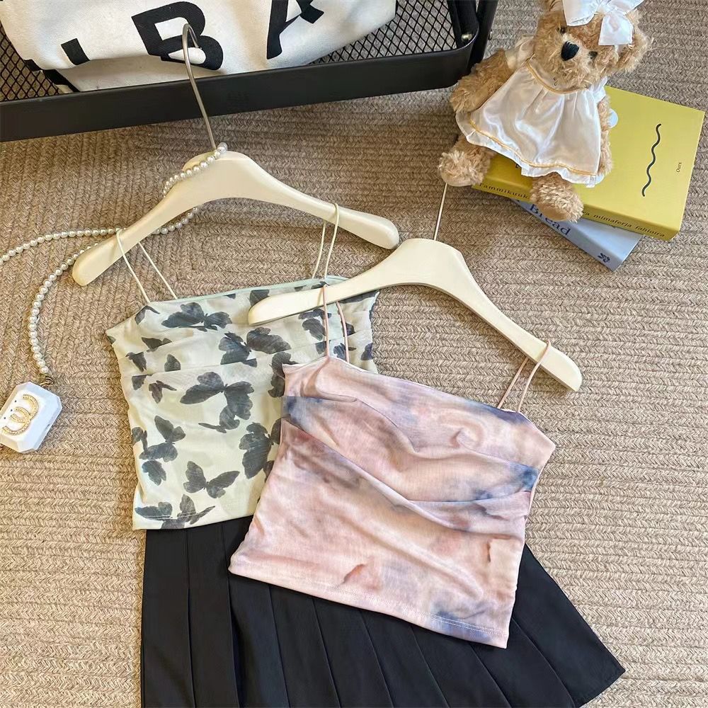 아메리칸 핫걸 스트레치 타이다이 메쉬 유화 스타일 캐미솔 여성용 가슴 패드 포함, 아름다운 등, 이너웨어 및 아우터웨어 트렌디 탑스토어 가기