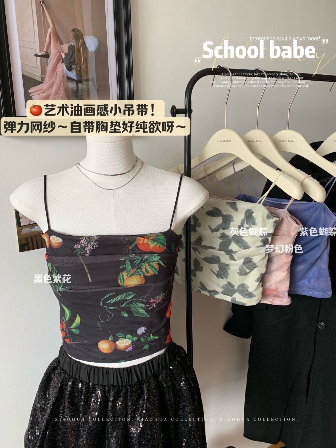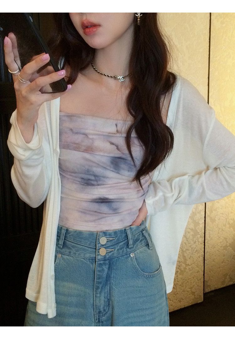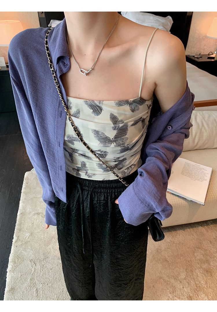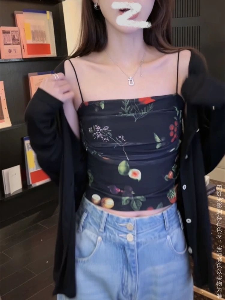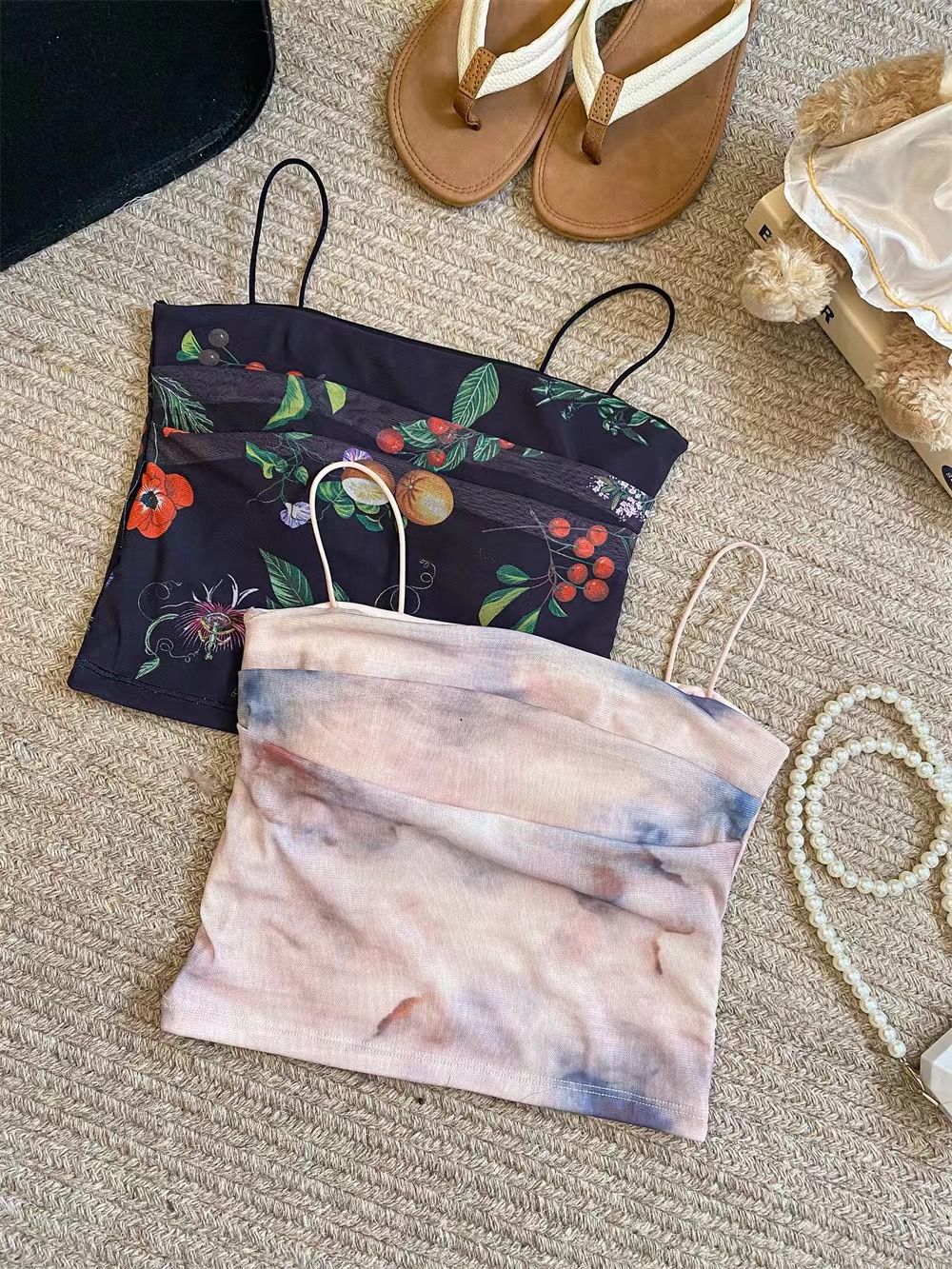 아메리칸 핫걸 스트레치 타이다이 메쉬 유화 스타일 캐미솔 여성용 가슴 패드 포함, 아름다운 등, 이너웨어 및 아우터웨어 트렌디 탑스토어 가기