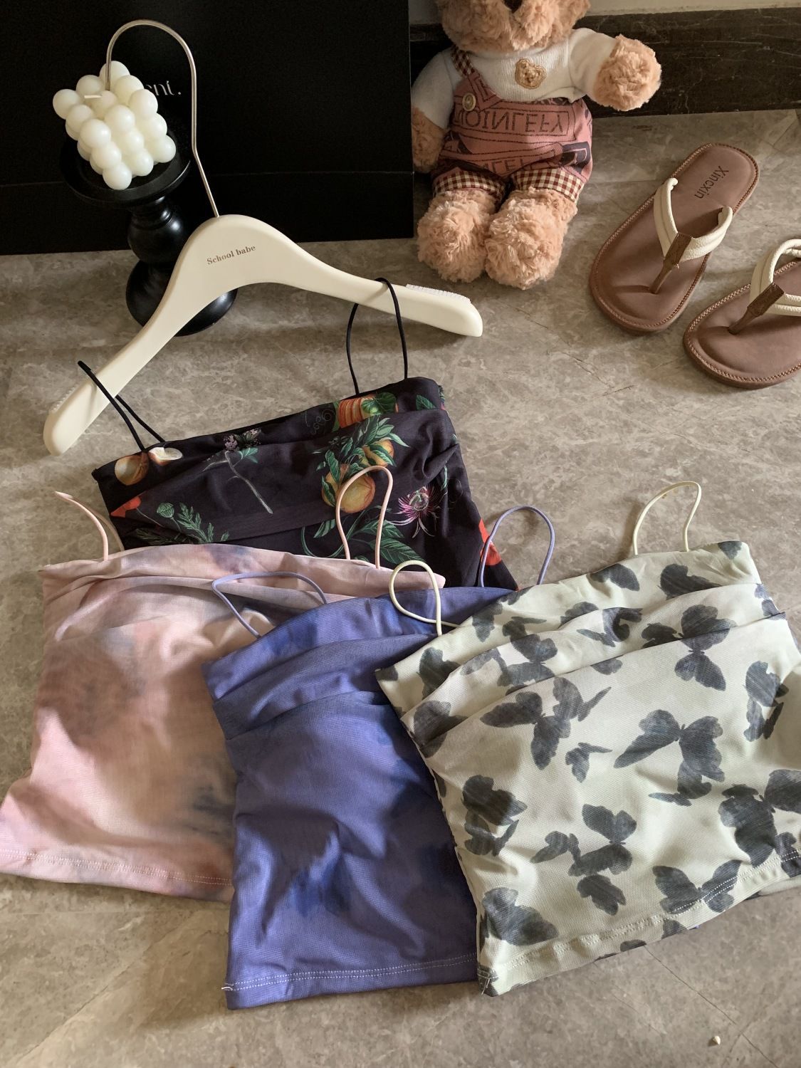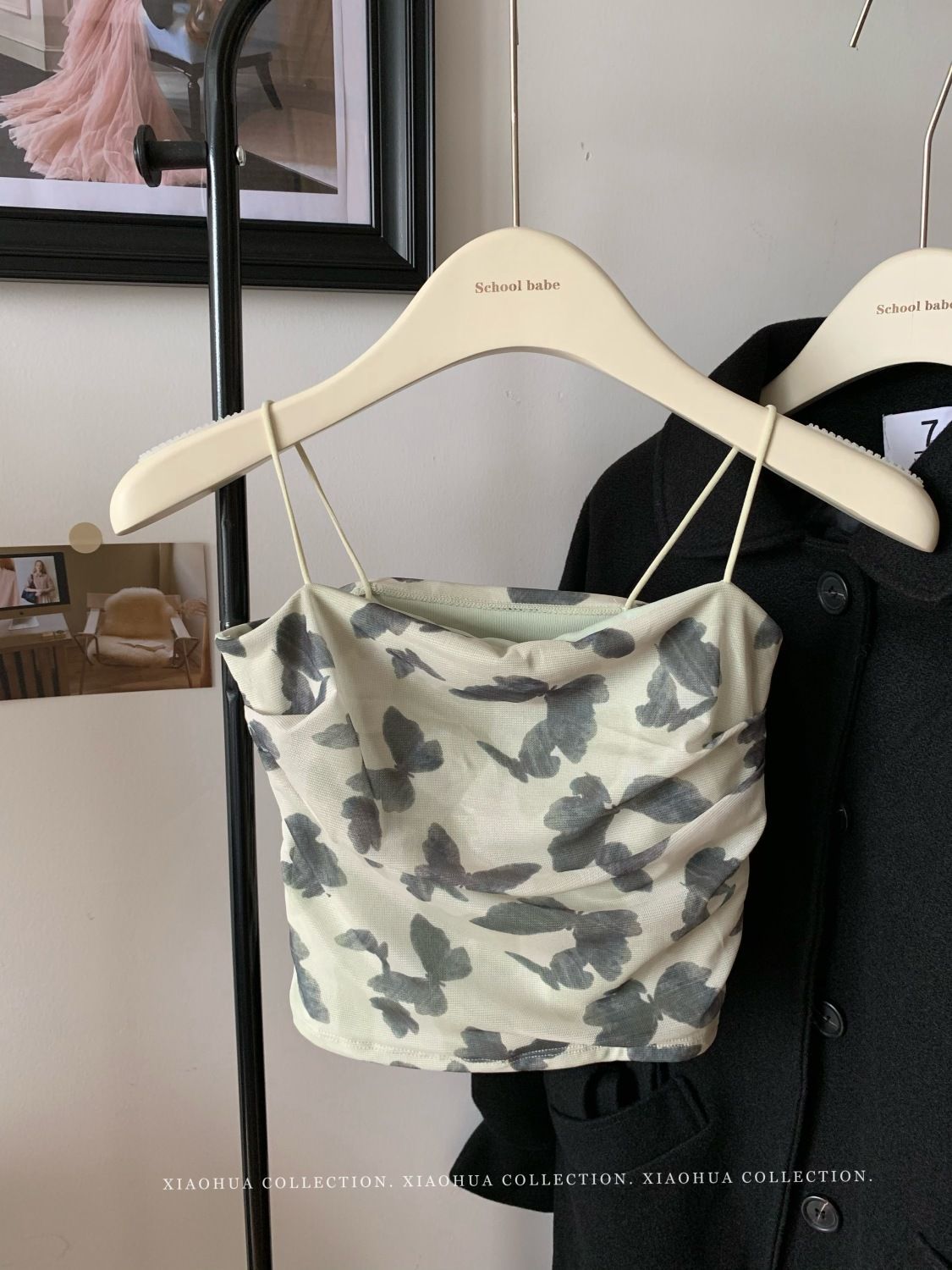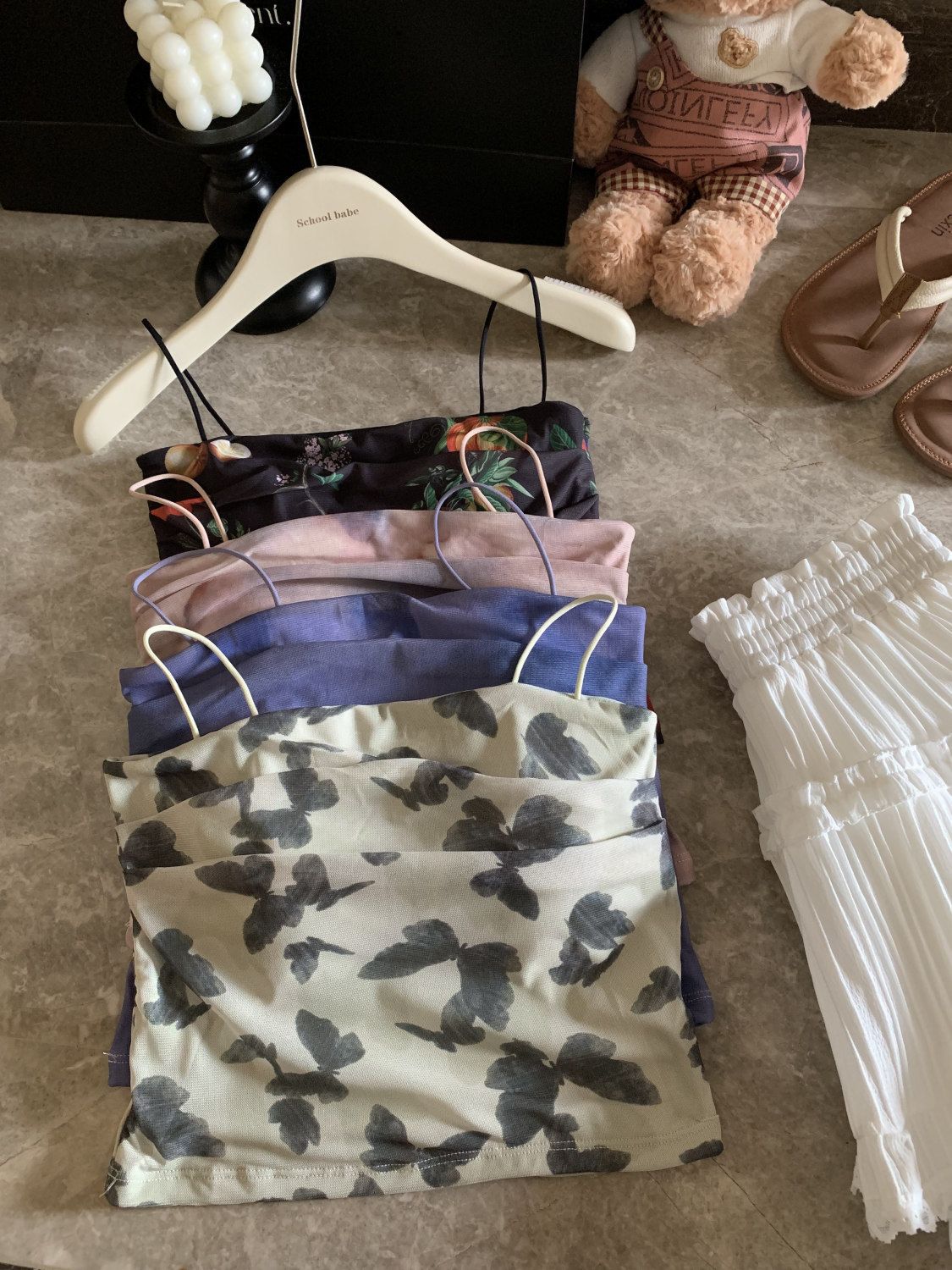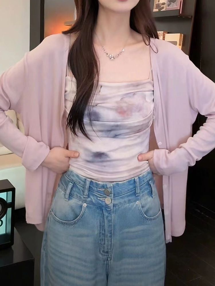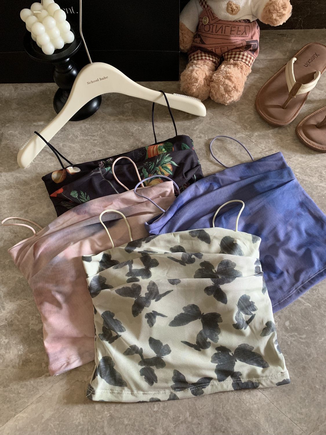 아메리칸 핫걸 스트레치 타이다이 메쉬 유화 스타일 캐미솔 여성용 가슴 패드 포함, 아름다운 등, 이너웨어 및 아우터웨어 트렌디 탑스토어 가기
