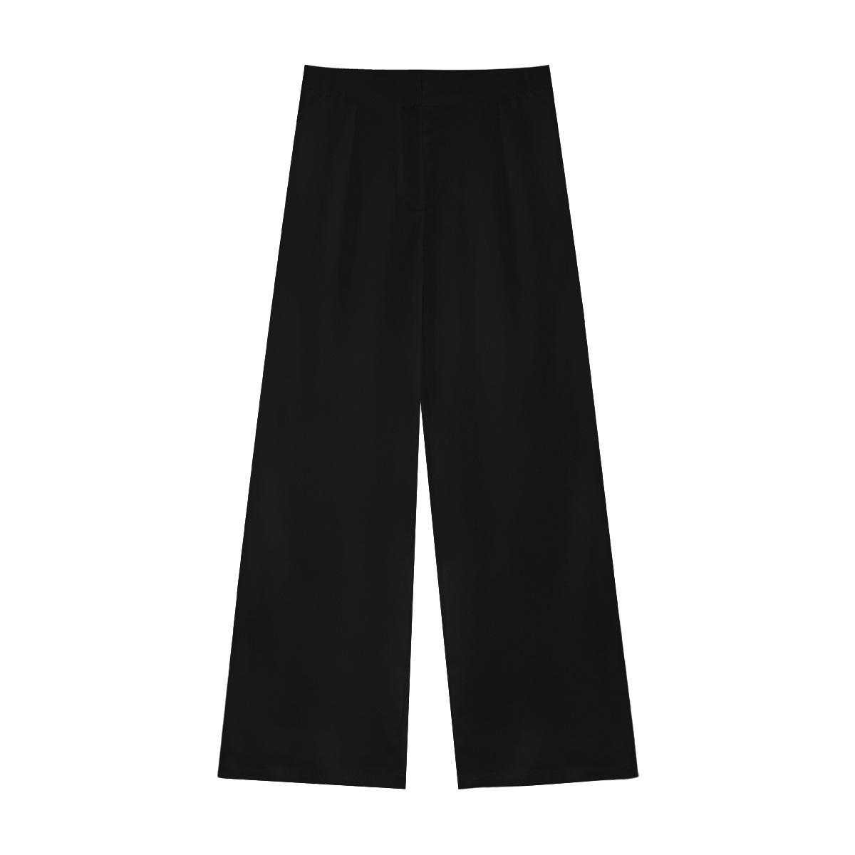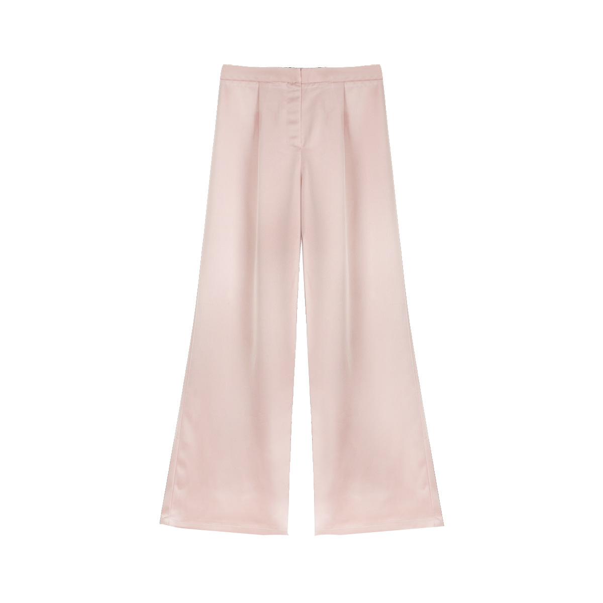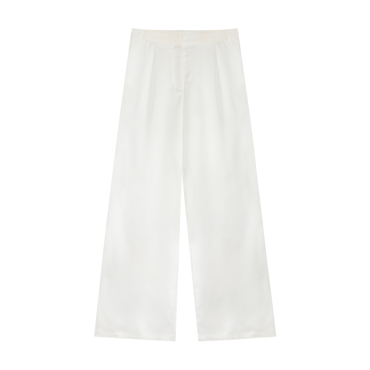 "미끄러운 바지" 모방 Acetic 펜던트 느슨한 넓은 다리 바지 스트레이트 캐주얼 새틴 바지 바지