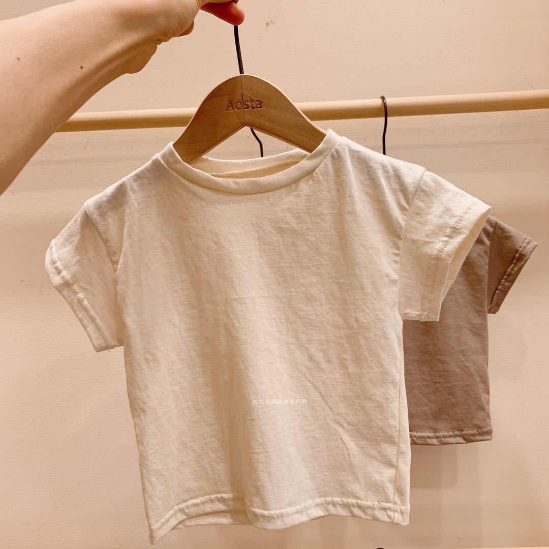 한국 아동복 단색면 티셔츠 2020 새로운 어린이 원단 부드러운 어린이 0-1 세 아기 반소매 바닥 셔츠스토어 가기