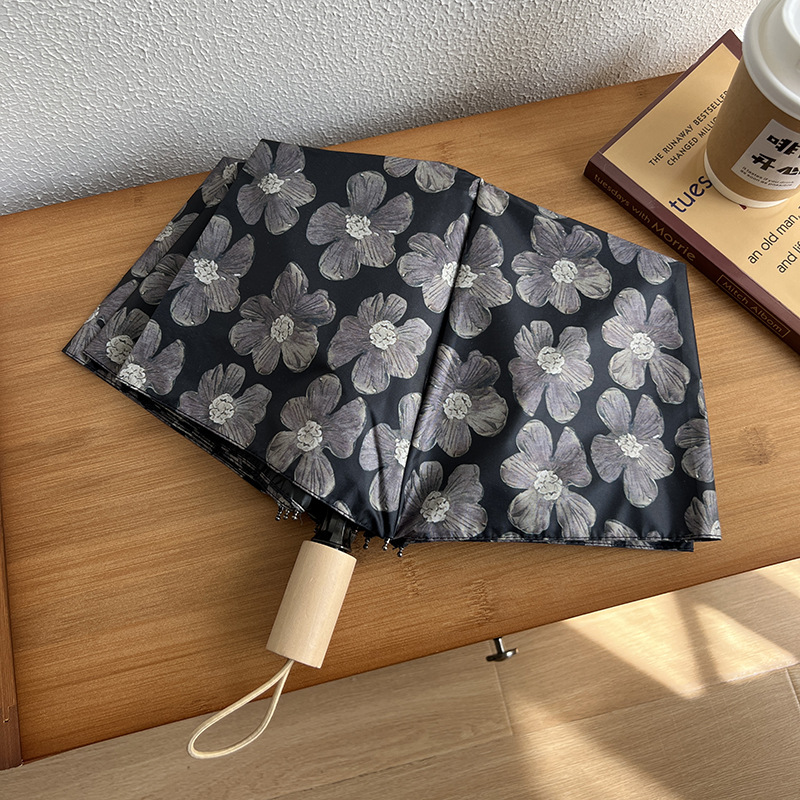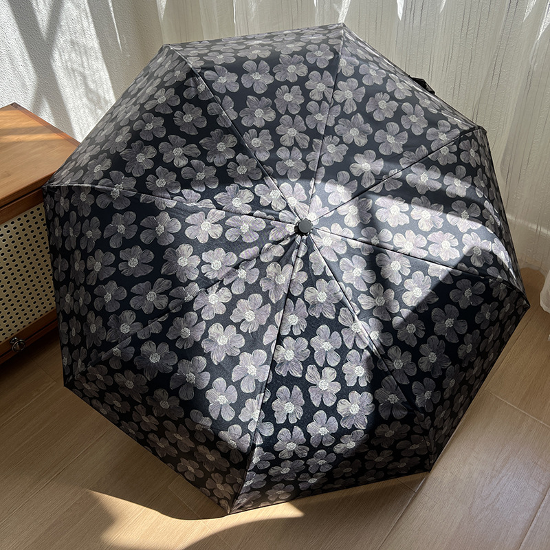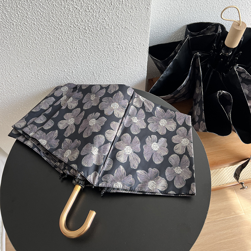 Posa 고색 가치 절제 검은 꽃 곡선 후크 선 스크린 3 배 접는 우산 여성의 맑고 비오는 우산스토어 가기