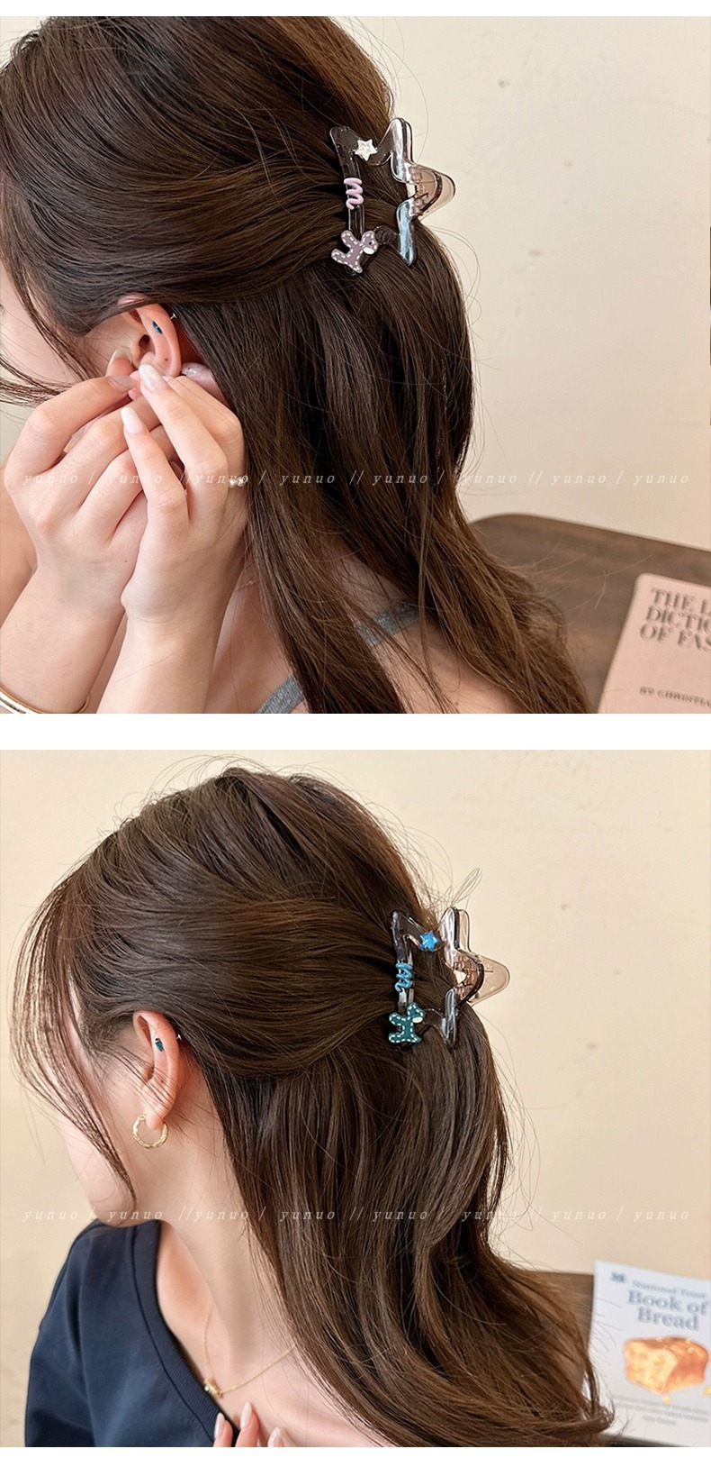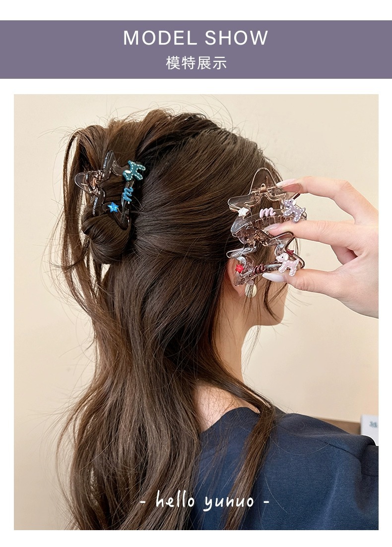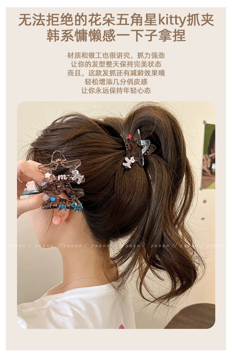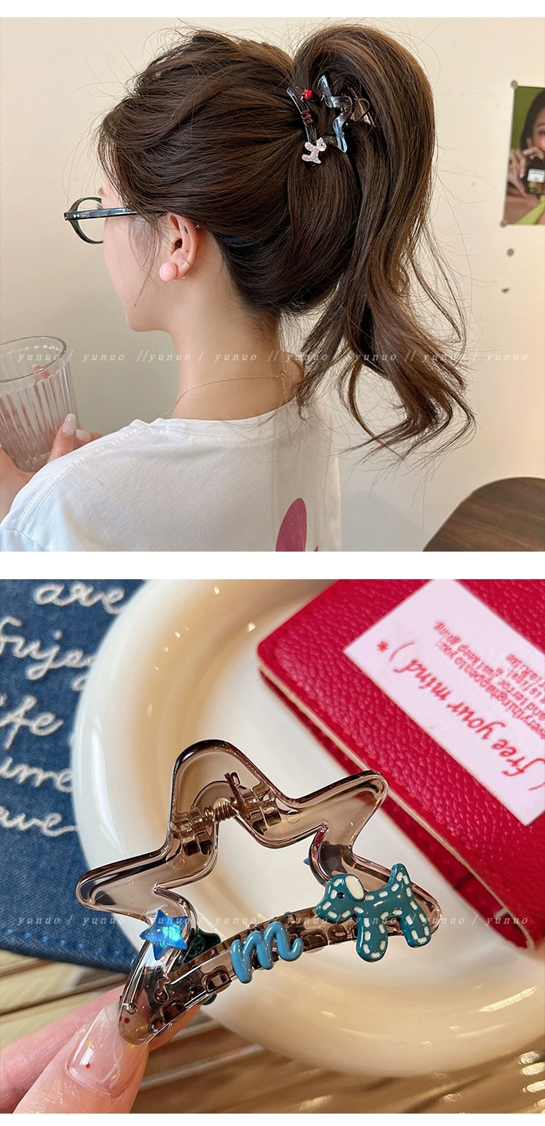봄과 여름 높은 포니 테일 다섯개 별 그랩 여성용 2025 새로운 백 헤드 헤어 클립 고급 센스 하프 헤어 상어 클립스토어 가기