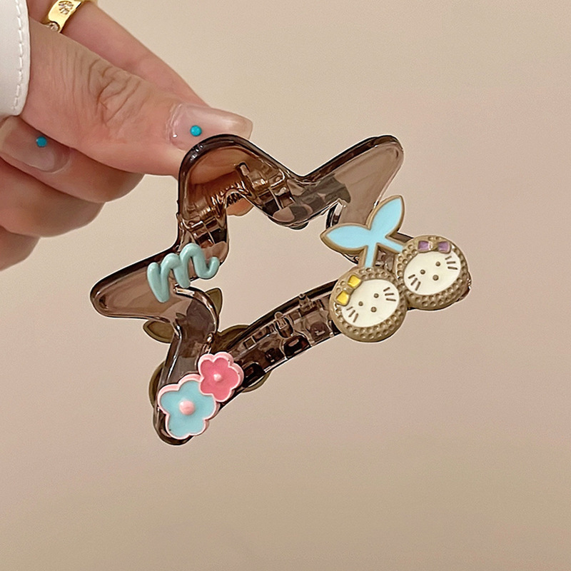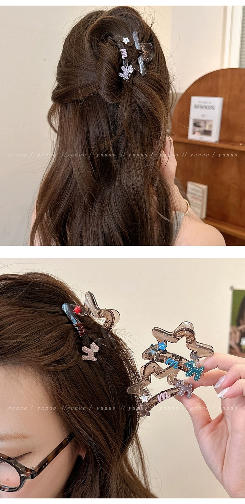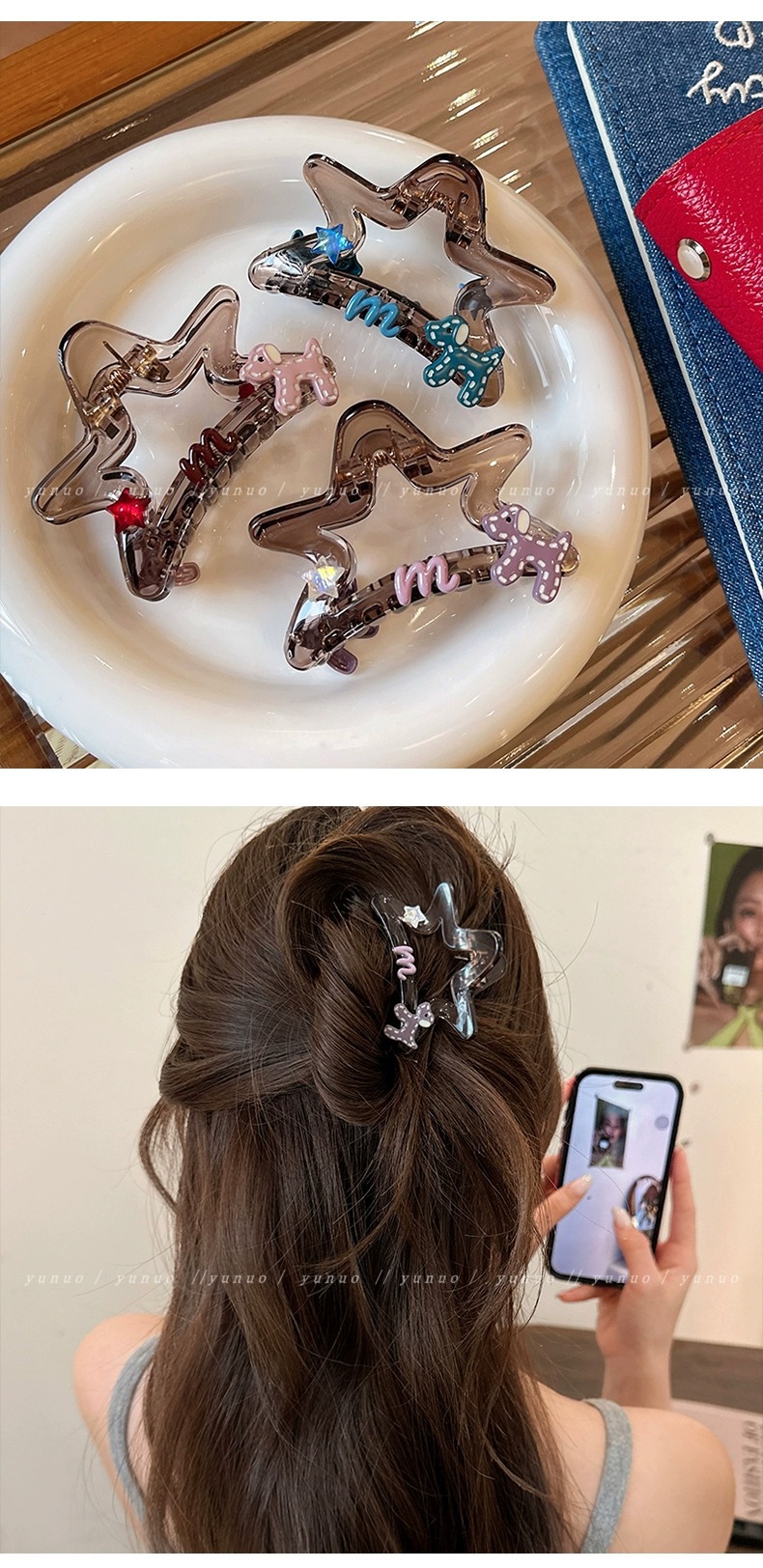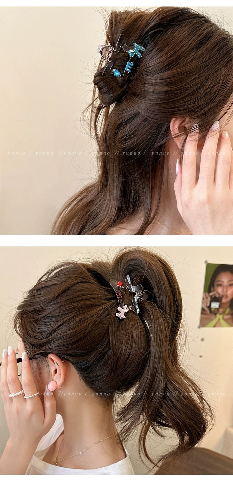 봄과 여름 높은 포니 테일 다섯개 별 그랩 여성용 2025 새로운 백 헤드 헤어 클립 고급 센스 하프 헤어 상어 클립스토어 가기