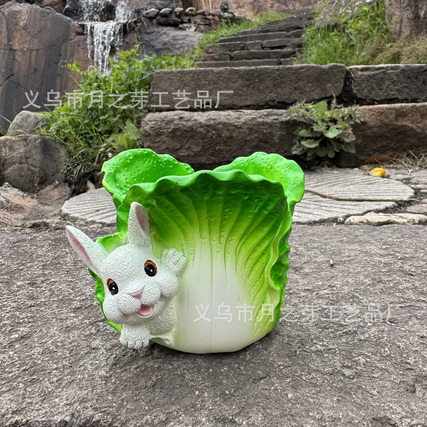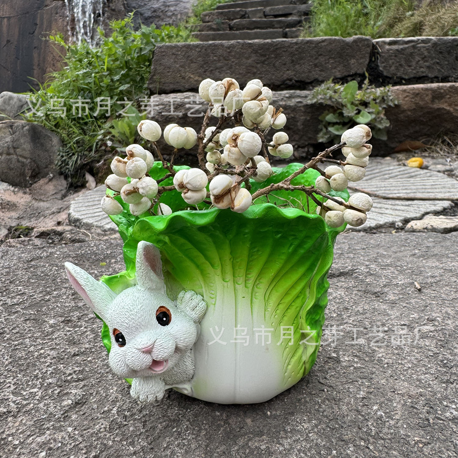 새로운 유럽 스타일 양배추 토끼 수지 다육 꽃 냄비 녹색 식물 꽃 냄비 정원 및 홈 바탕 화면 장식 꽃 냄비