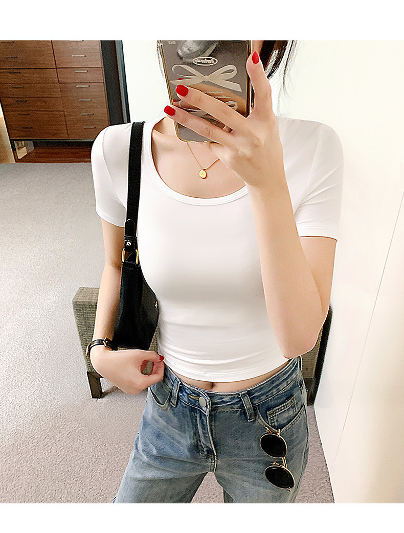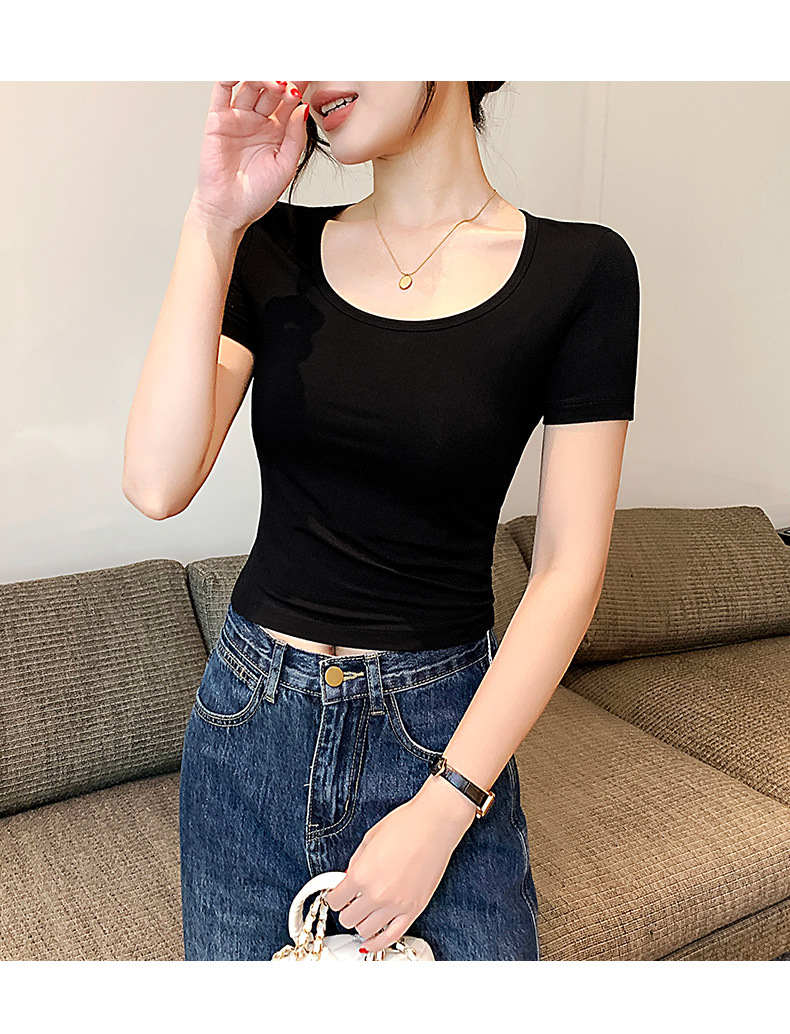 여성용 라운드 넥 블랙 모달 반팔 티셔츠 2025 새로운 스타일 다용도 슬리밍 바닥 노출 탑스토어 가기
