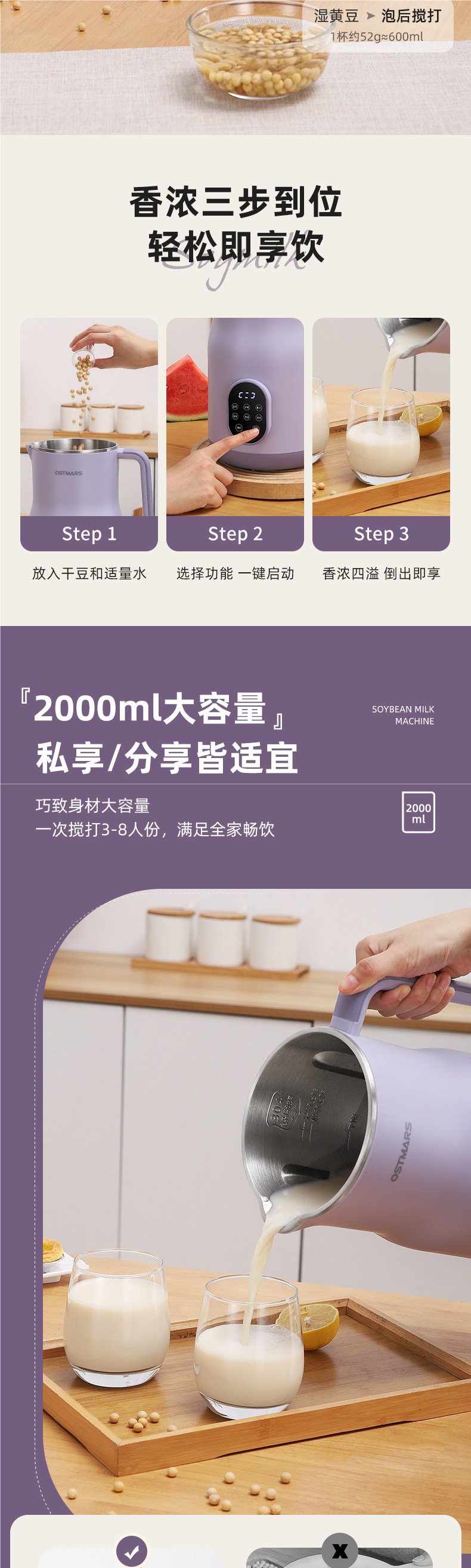 독일 두유 기계 가정용 완전 자동 다기능 2L 대용량 3-4 명 무조리 및 필터링 벽 파괴 기계스토어 가기