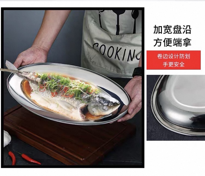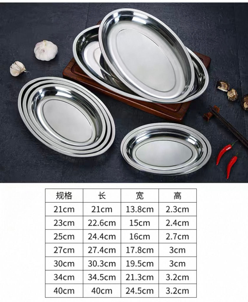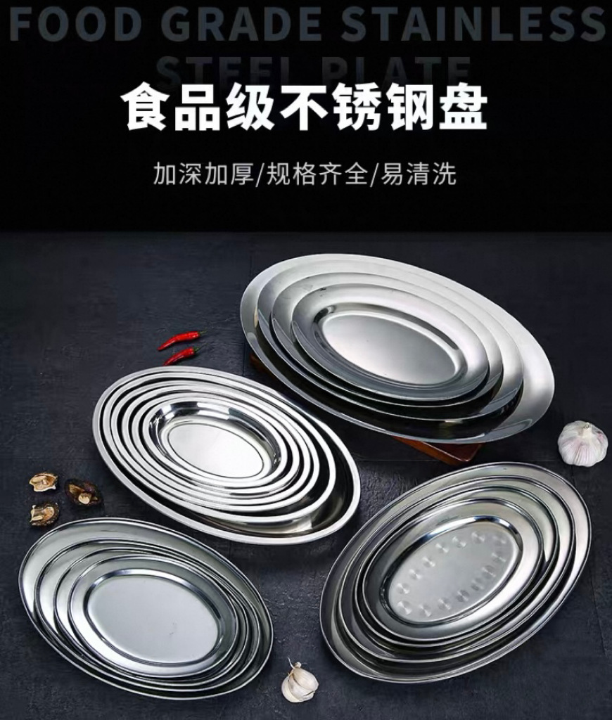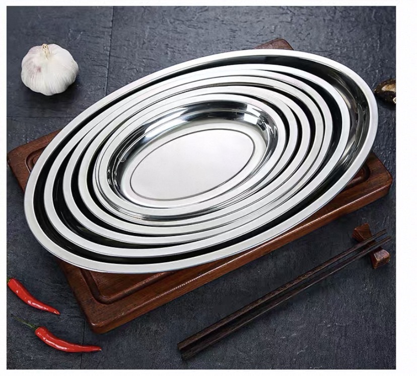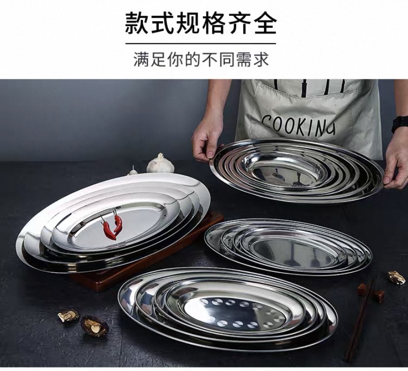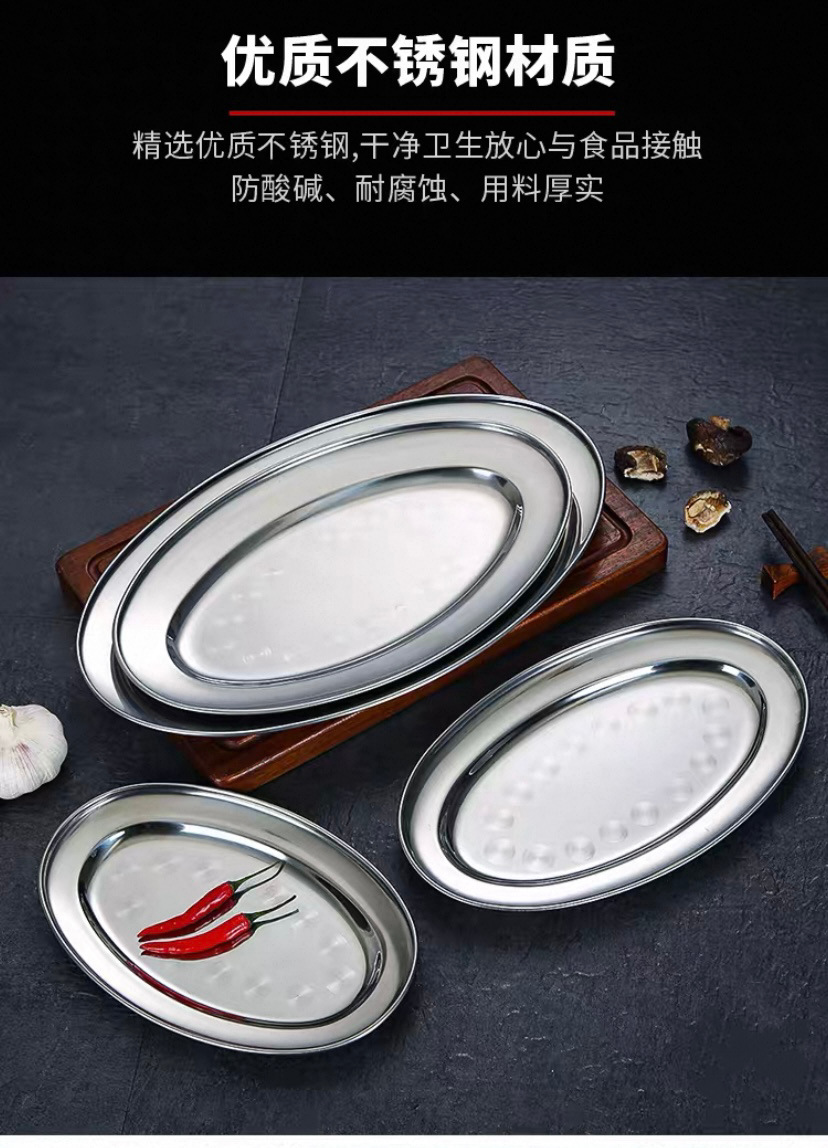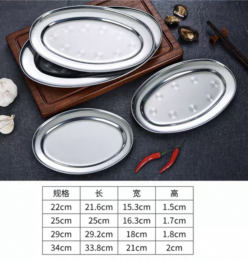 304 스테인레스 스틸 생선 접시 가정용 생선 찜 접시 새로운 크리 에이 티브 타원형 생선 접시 접시 원형 접시 작은 접시
