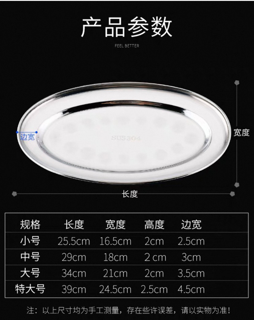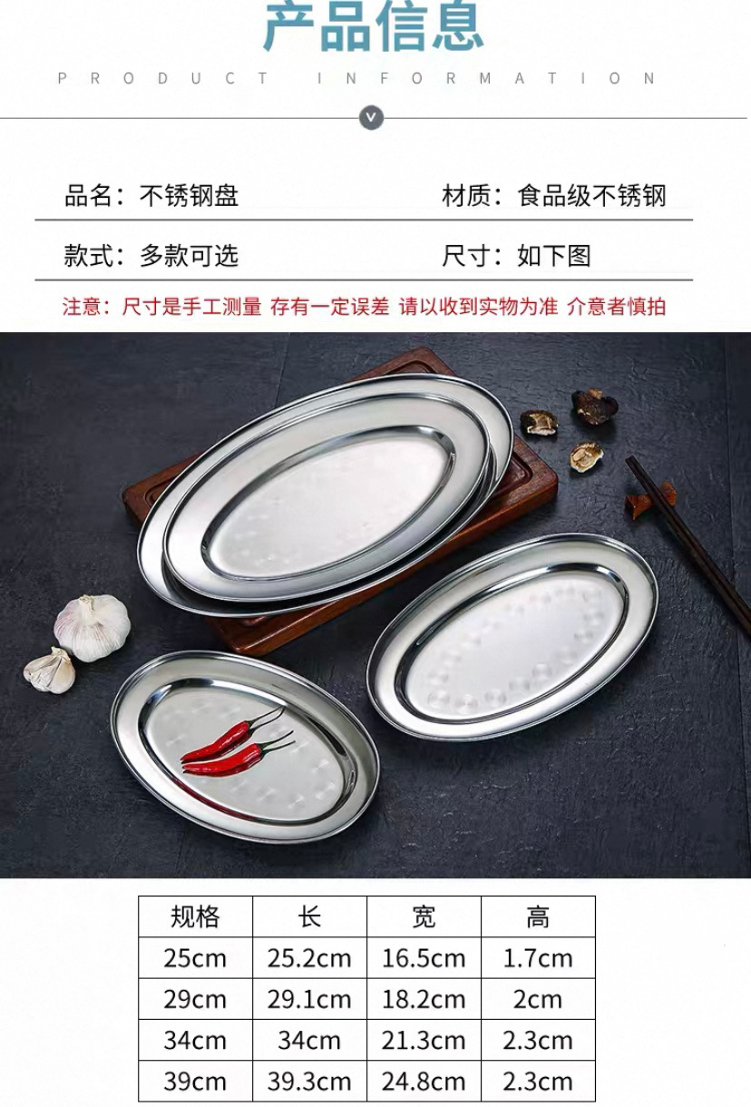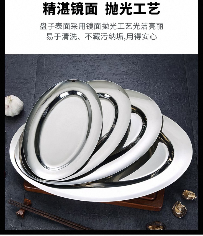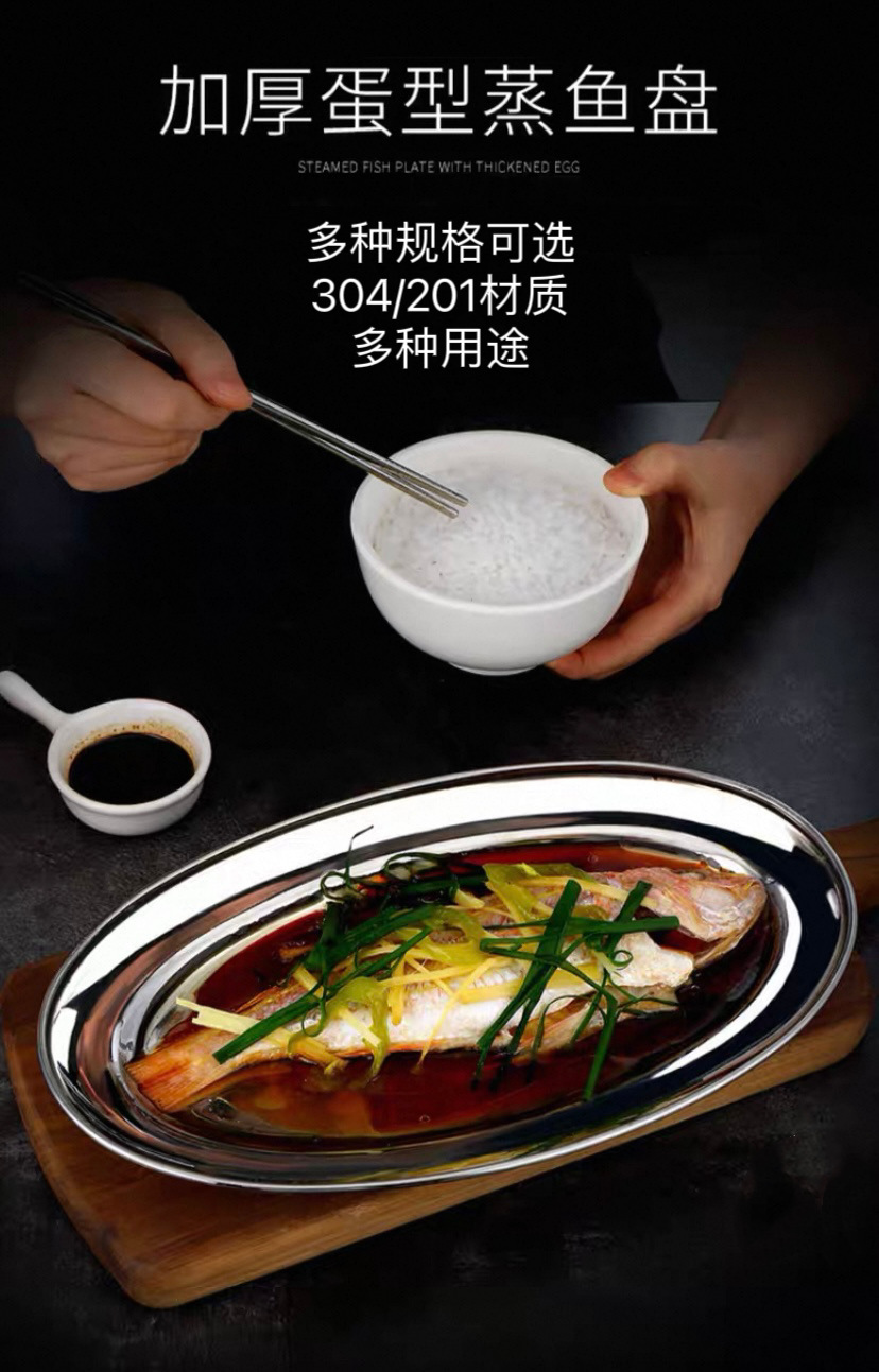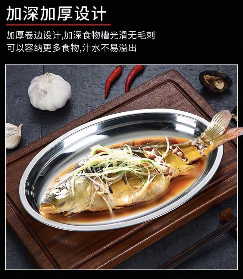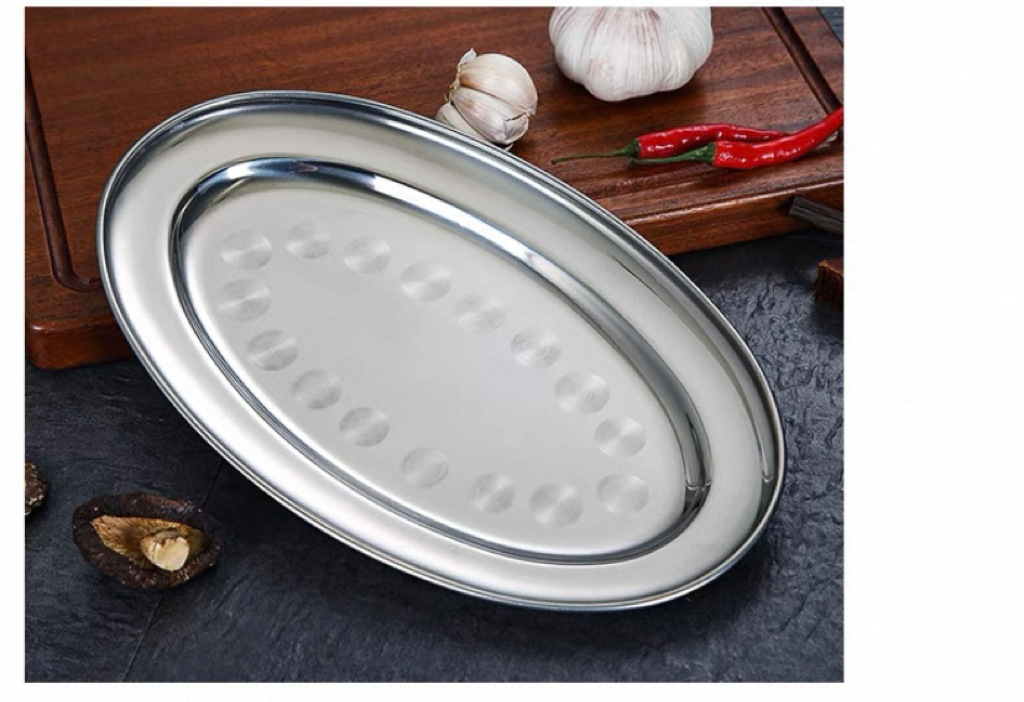304 스테인레스 스틸 생선 접시 가정용 생선 찜 접시 새로운 크리 에이 티브 타원형 생선 접시 접시 원형 접시 작은 접시