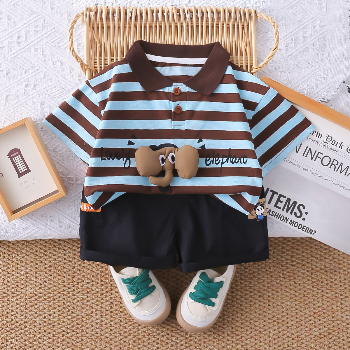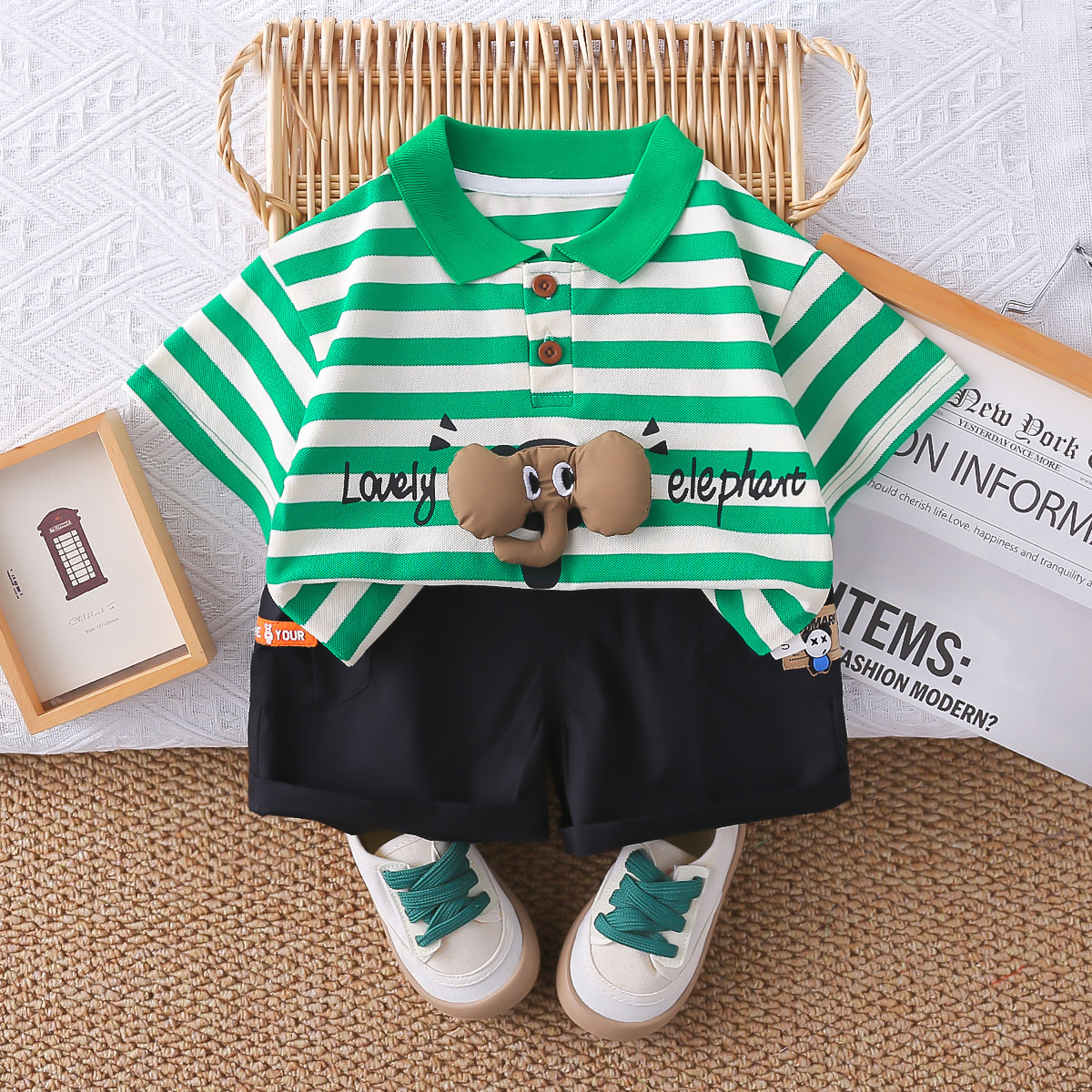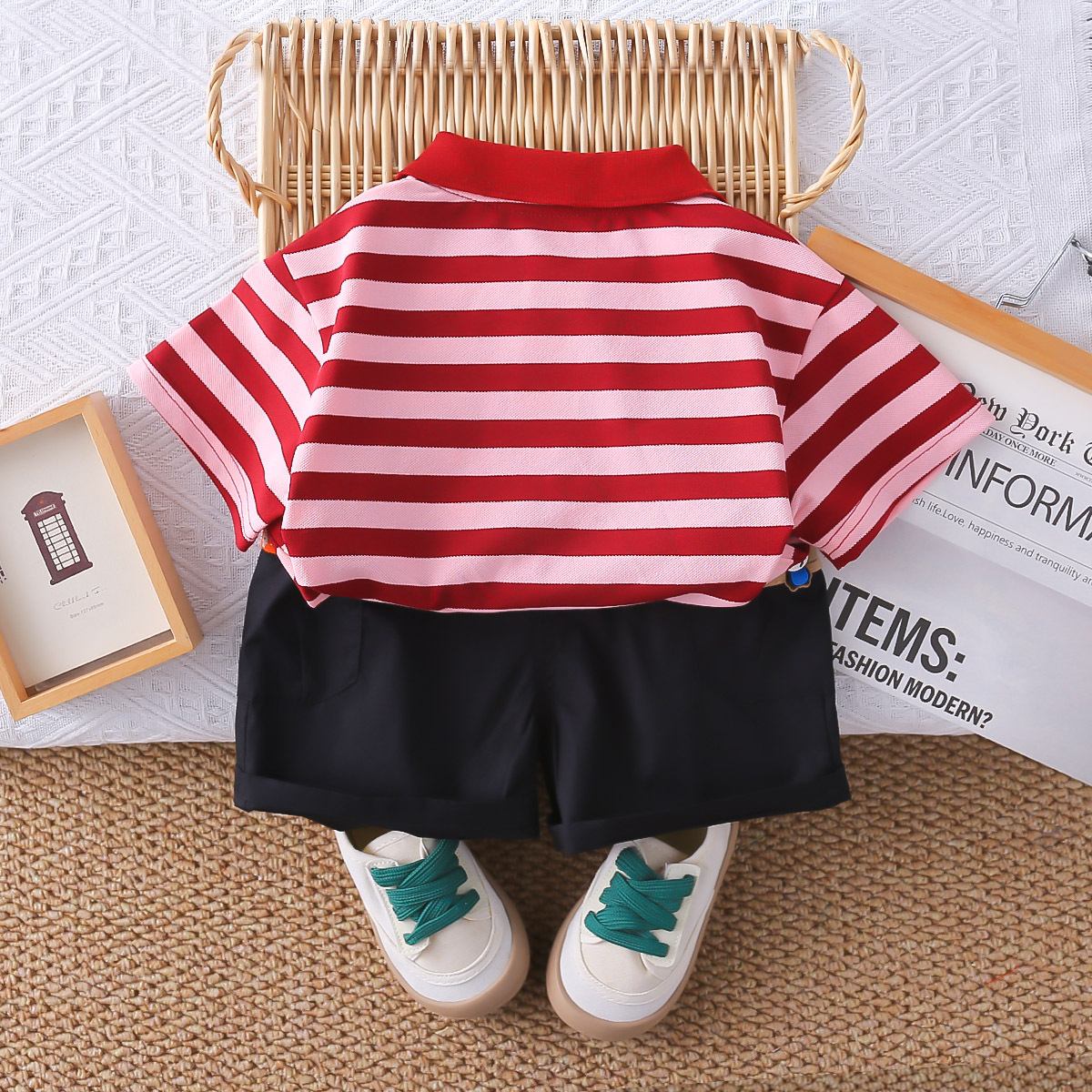 2025 년 어린이 여름 새 소년 줄무늬 반팔 세트 투피스 캐주얼 엘 유아용 반팔 반바지