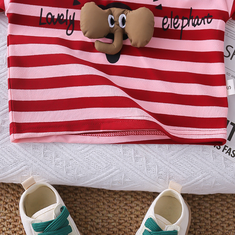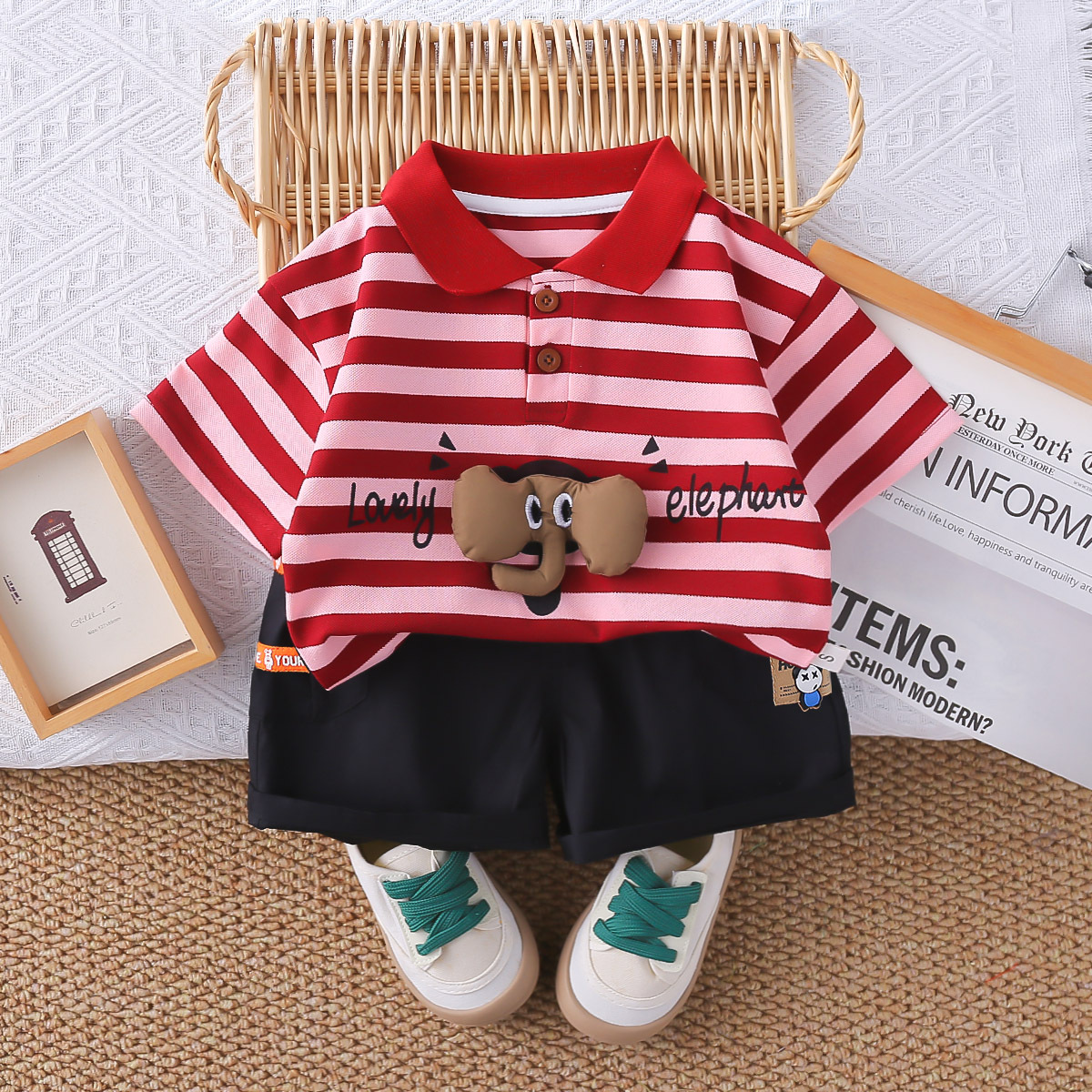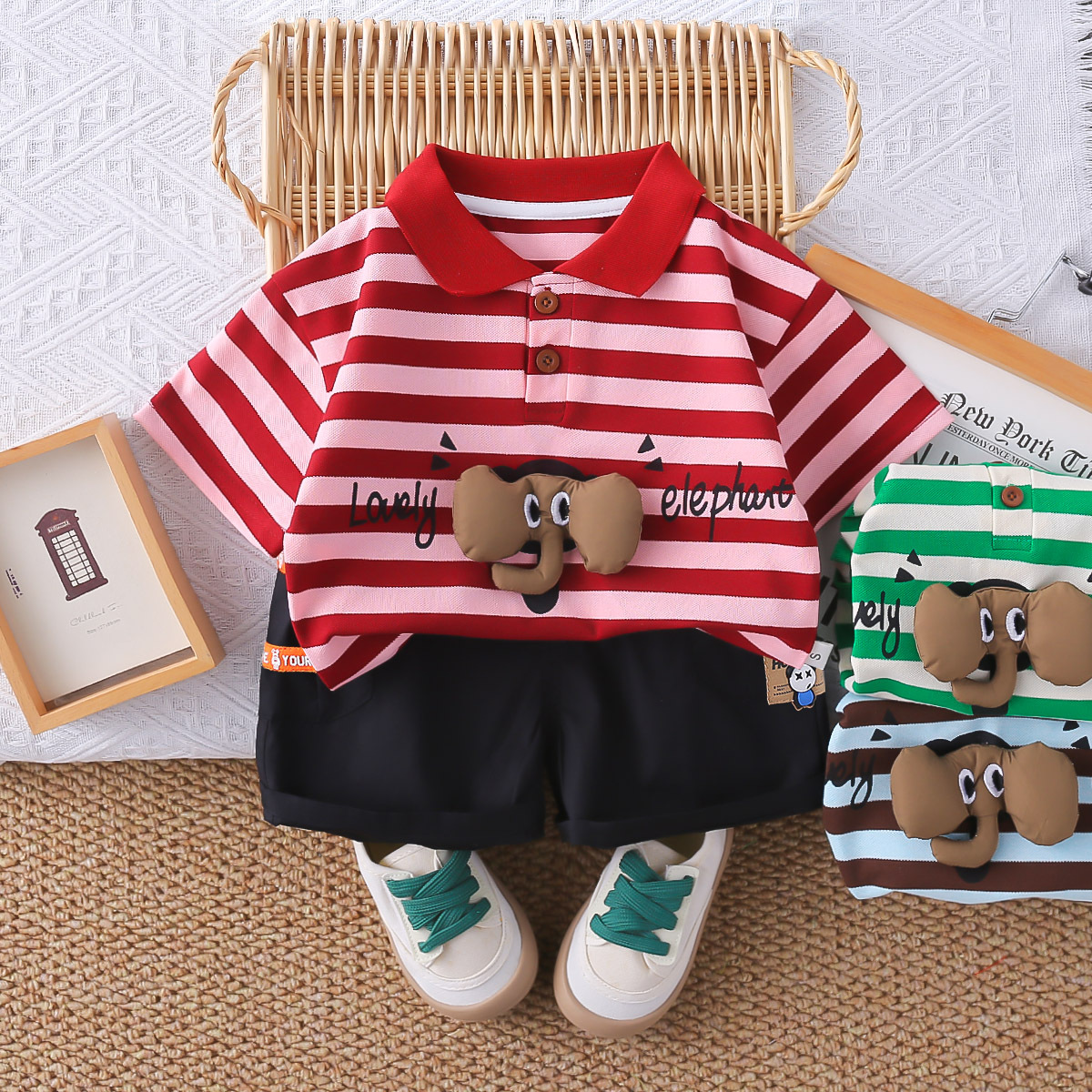 2025 년 어린이 여름 새 소년 줄무늬 반팔 세트 투피스 캐주얼 엘 유아용 반팔 반바지