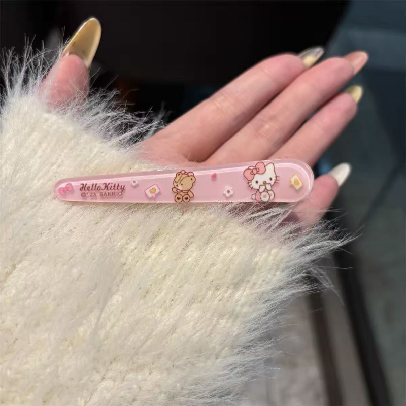 귀여운 격자 무늬 산리오 덕빌 클립 달콤한 소녀 하트 뱅이 클립 만화 올 매치 단순 스톨 헤어 액세서리