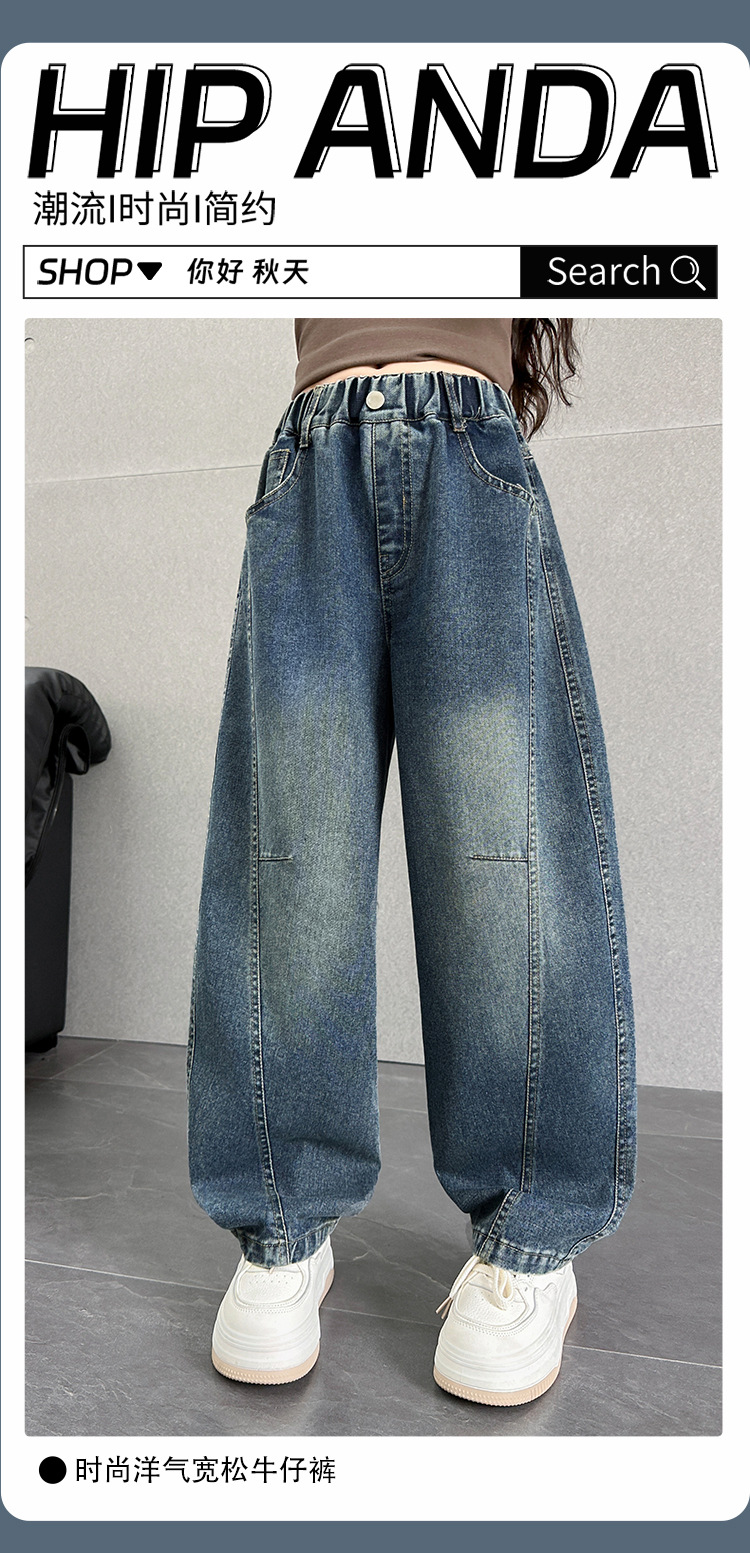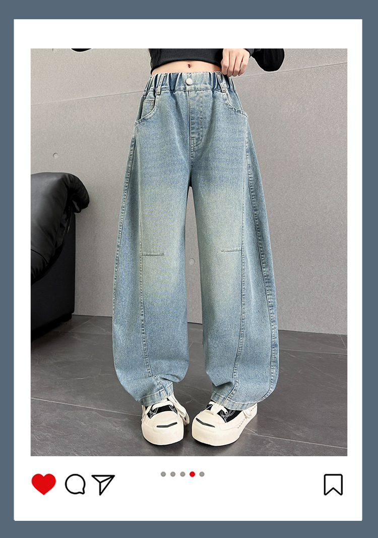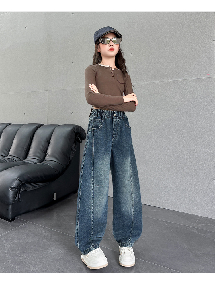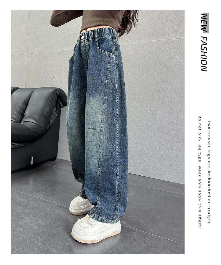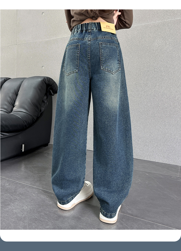 여아용 바지 가을옷 2025 신상 아동 겨울 인기 플러스벨벳 데님 중대형 아동용 루즈핏 칼모양 스트레이트 팬츠스토어 가기