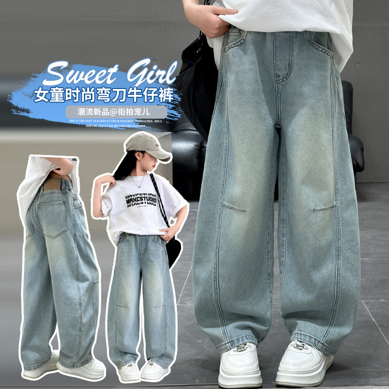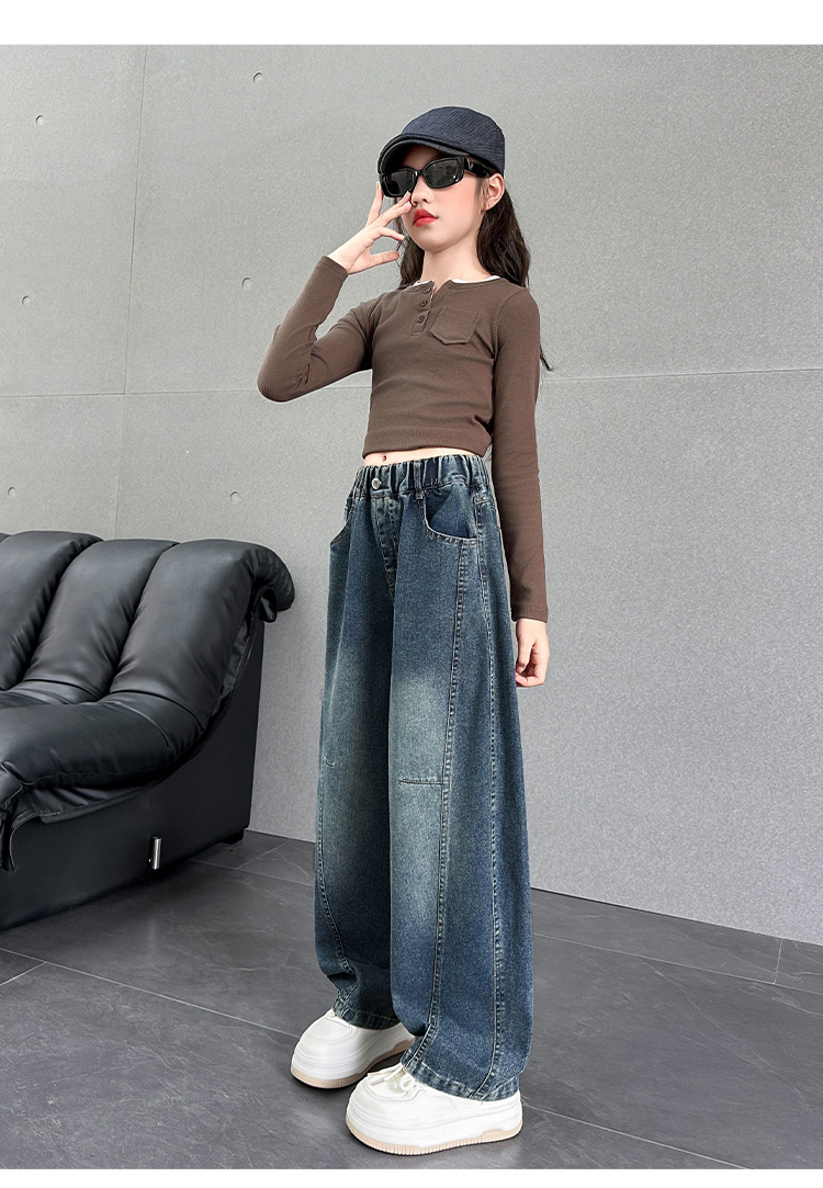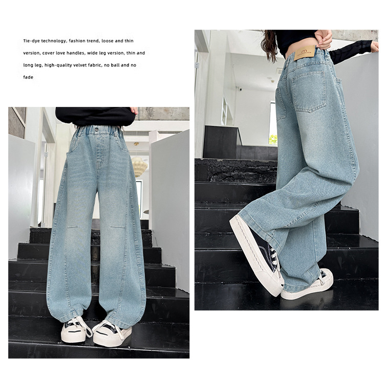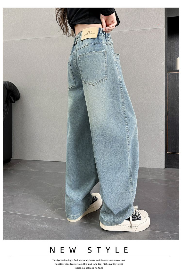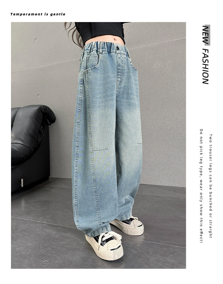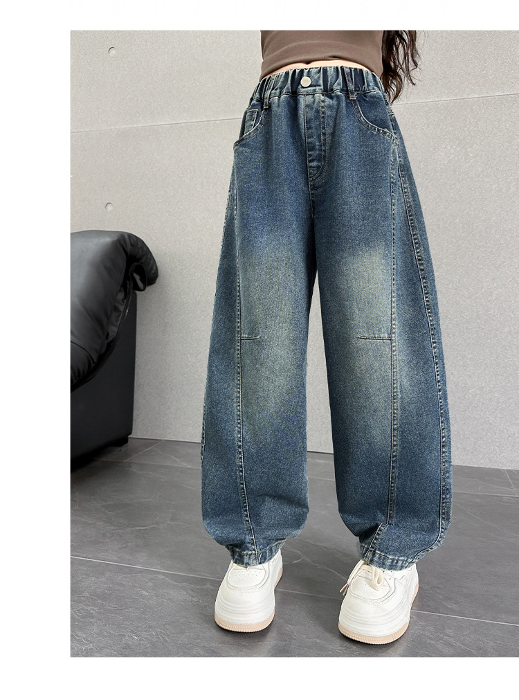 여아용 바지 가을옷 2025 신상 아동 겨울 인기 플러스벨벳 데님 중대형 아동용 루즈핏 칼모양 스트레이트 팬츠스토어 가기