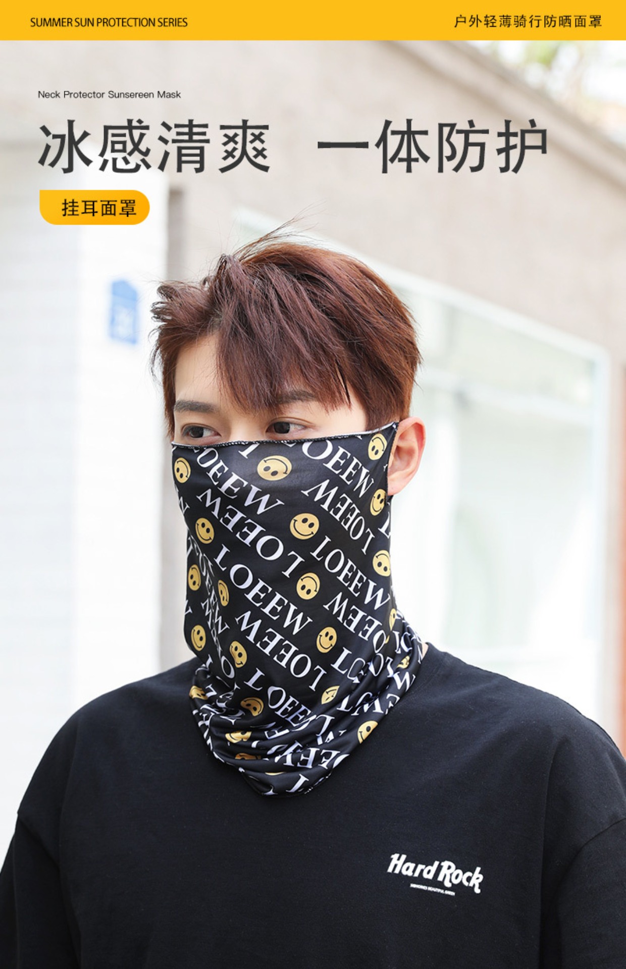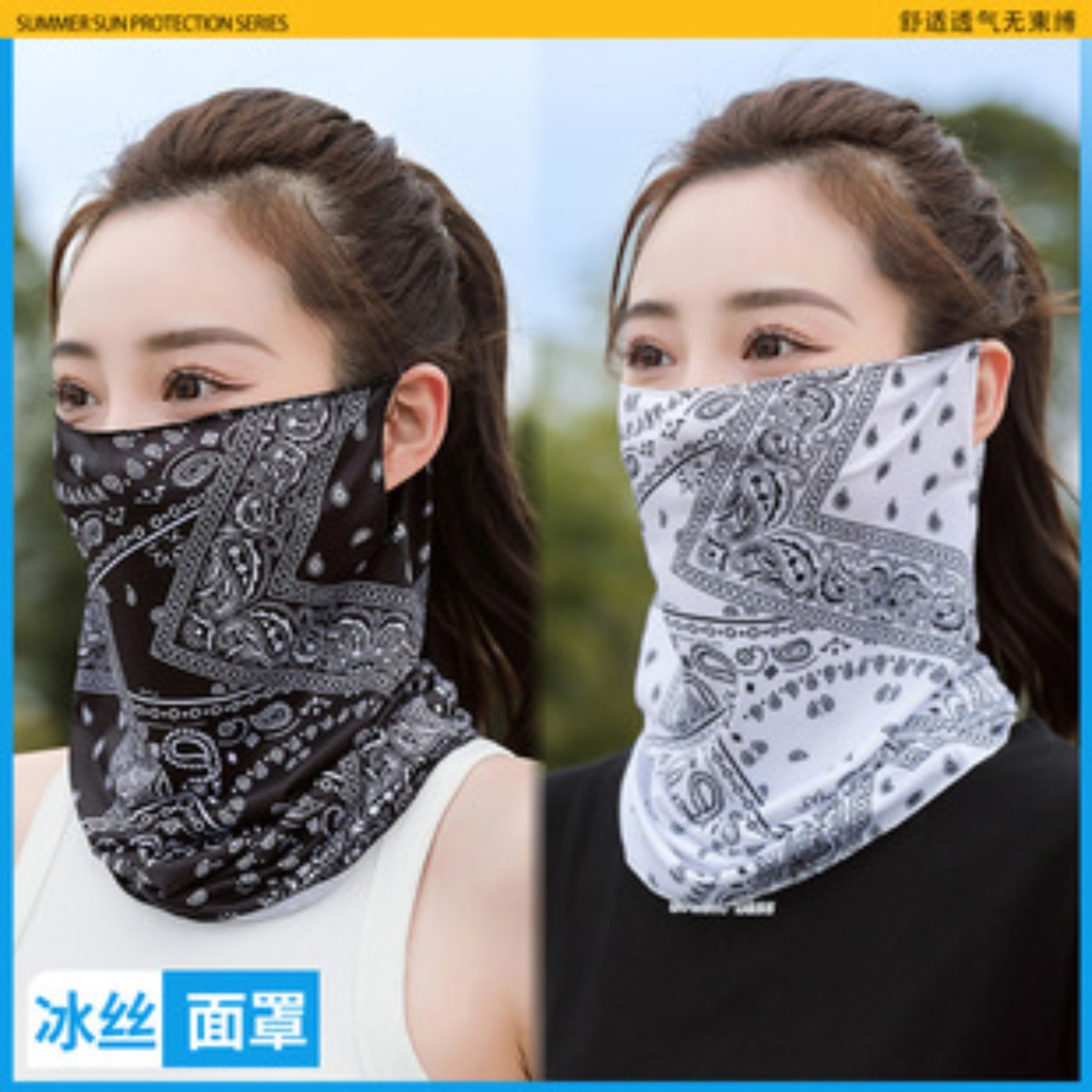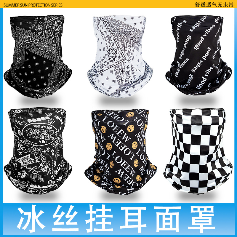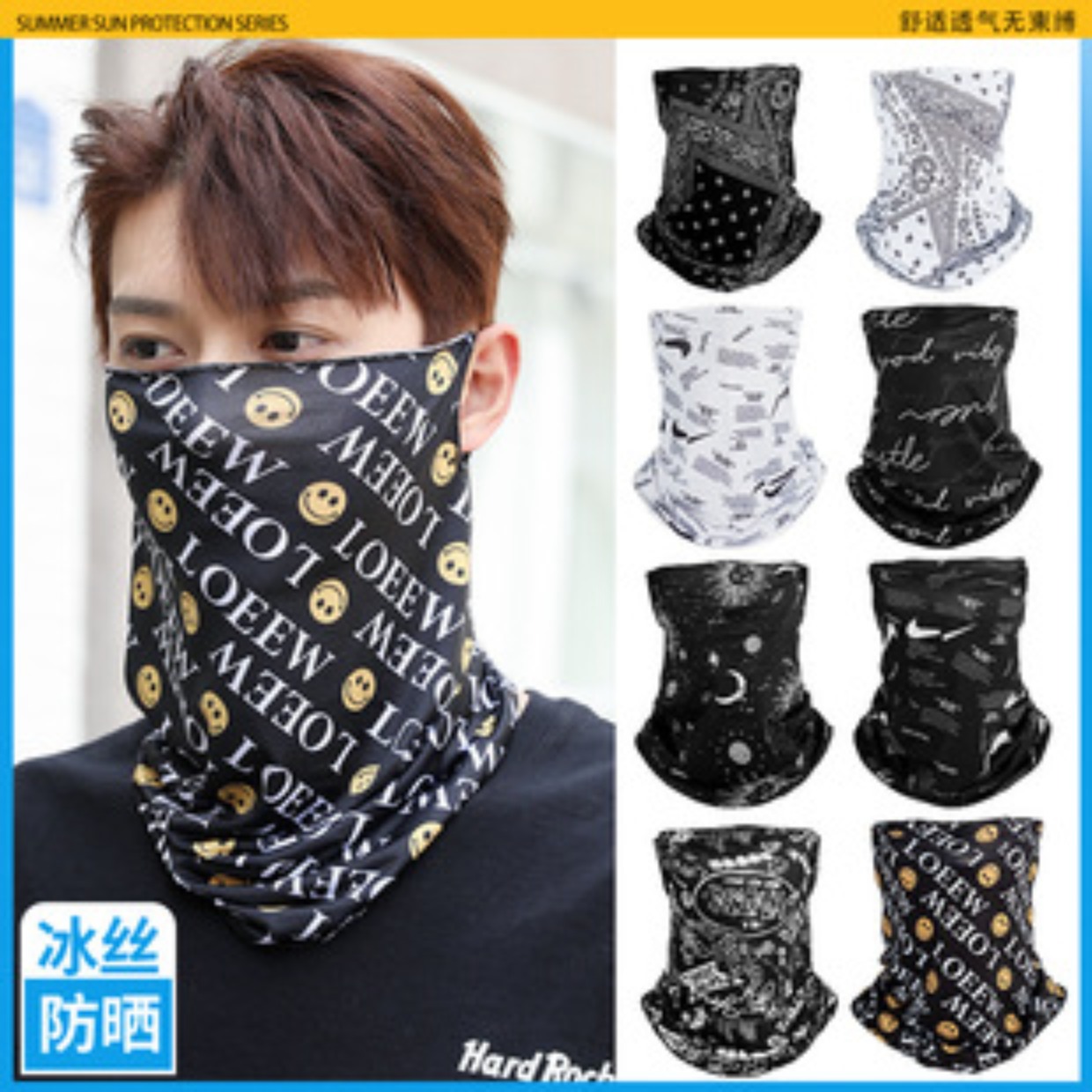 아이스 실크 선 스크린 마스크 남성과 여성의 얼굴 커버 목 스카프 여름 야외 승마 UV 보호 귀 수건