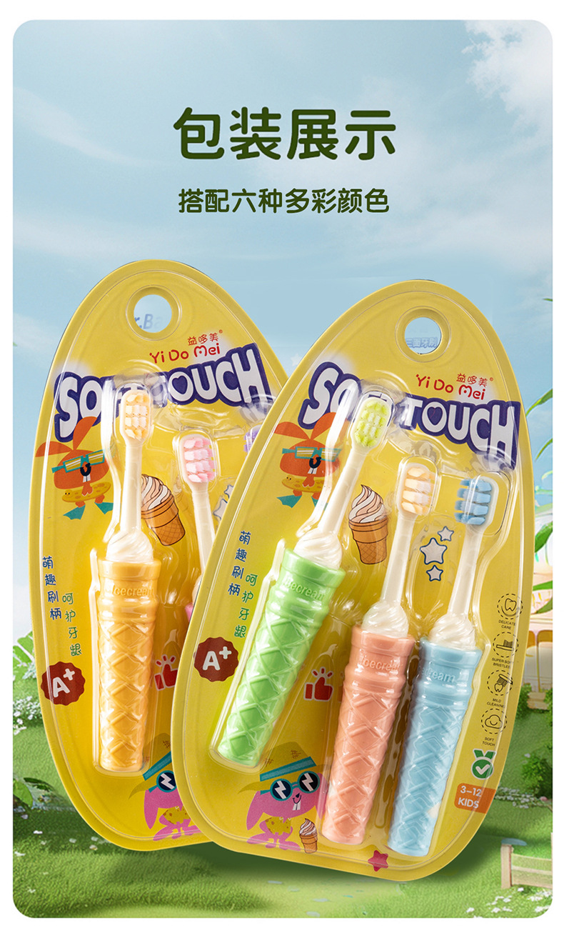Yiduomei 어린이 아이스크림 칫솔 3-12 세 아기 귀여운 부드러운 칫솔 3 팩 제조 업체 정품 도매스토어 가기