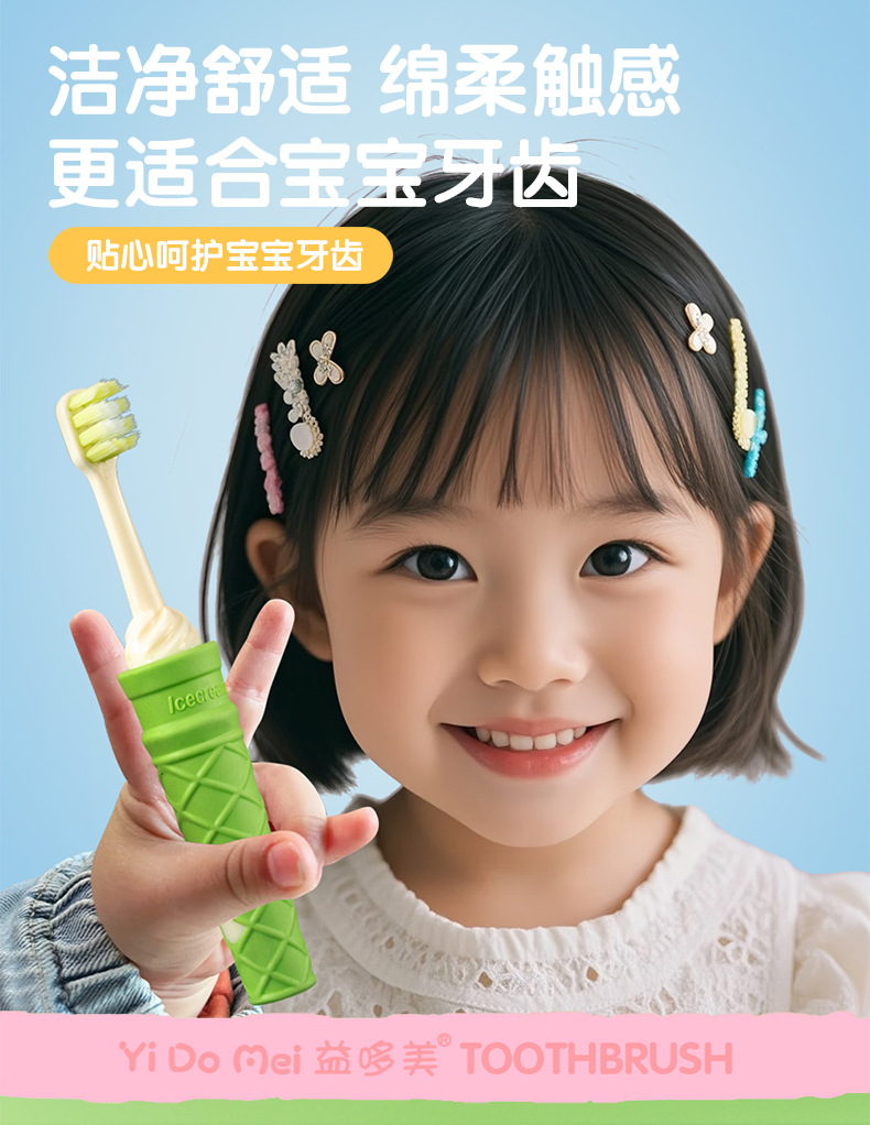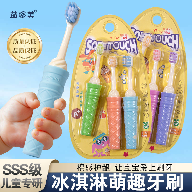 Yiduomei 어린이 아이스크림 칫솔 3-12 세 아기 귀여운 부드러운 칫솔 3 팩 제조 업체 정품 도매