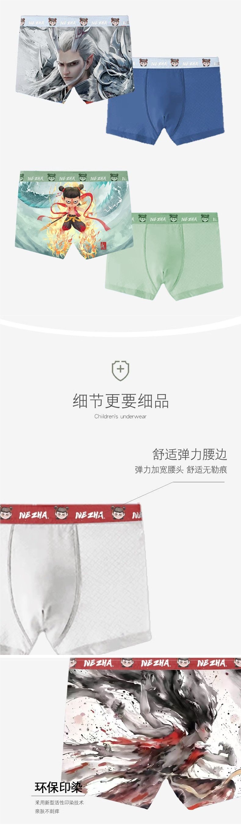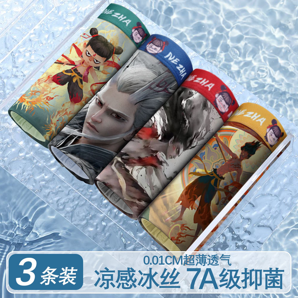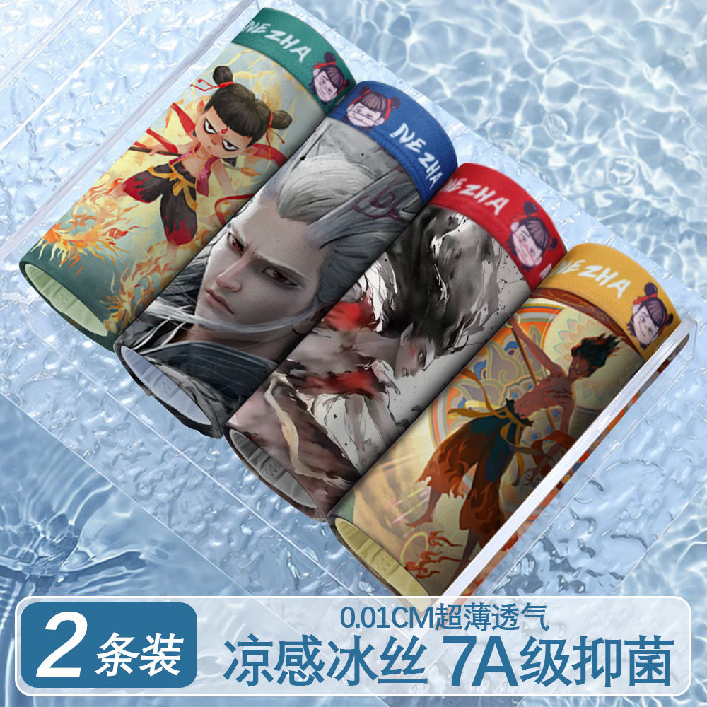 새로운 Nezha 얼음 실크 소년 속옷 복서 7A 항균 만화 어린 소년 반바지 통기성 복서 팬티 여름