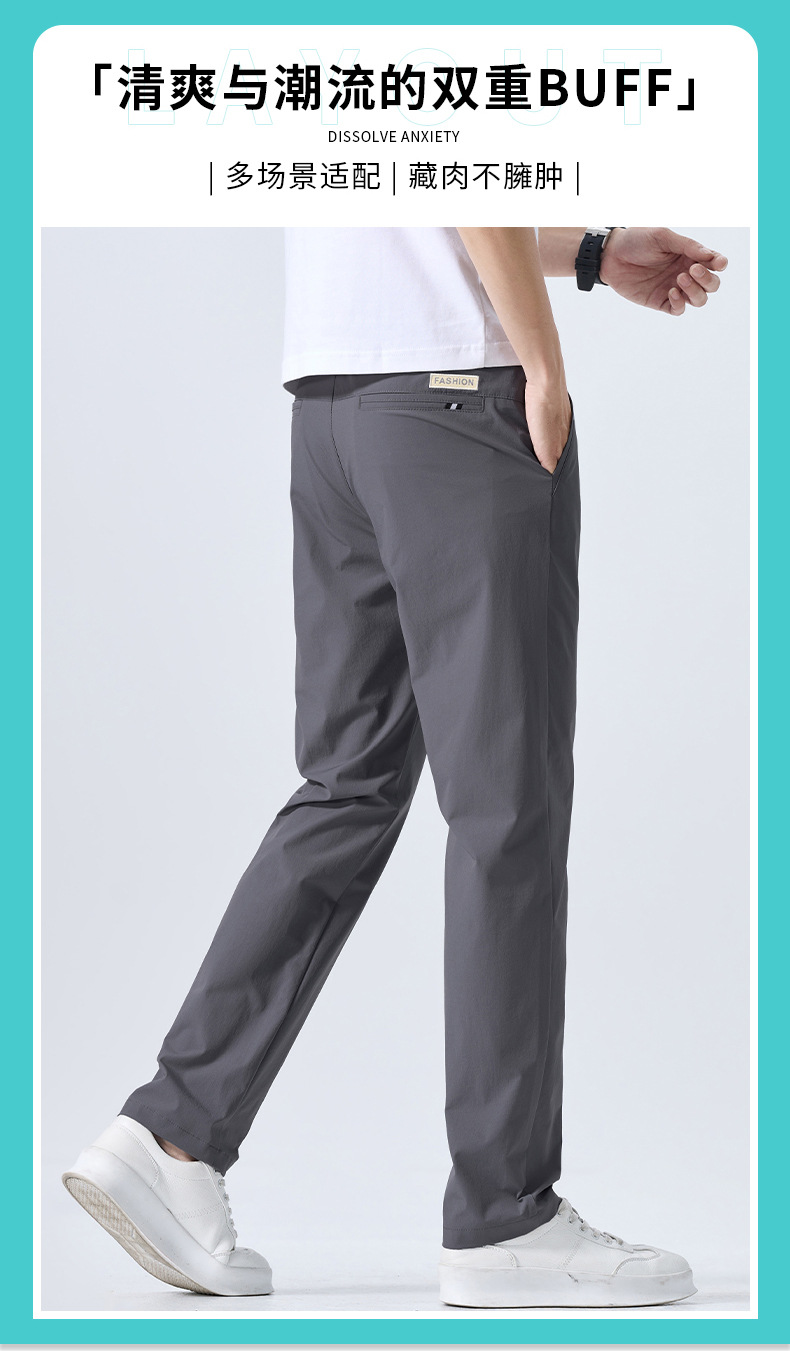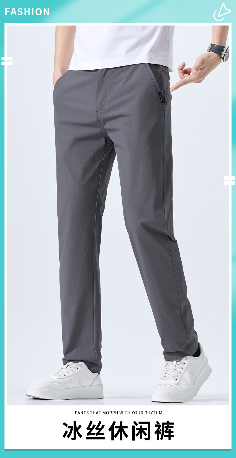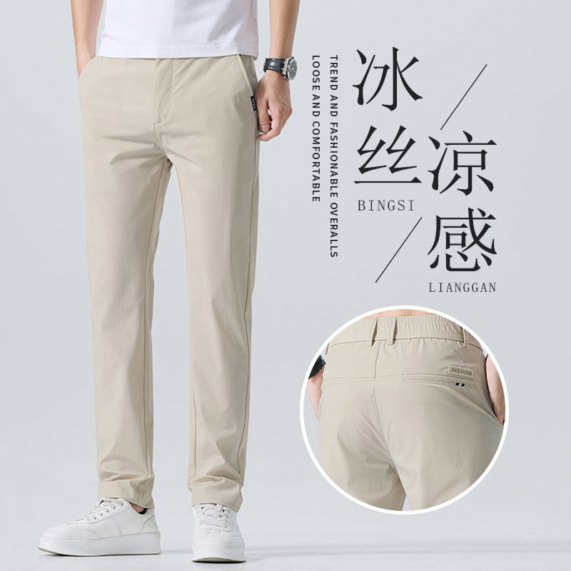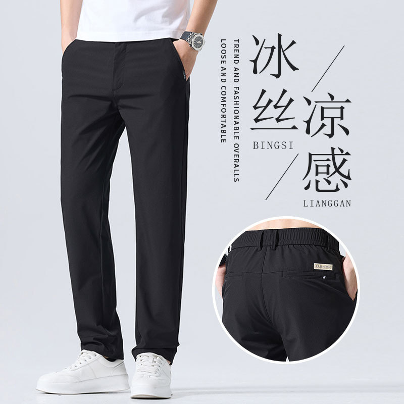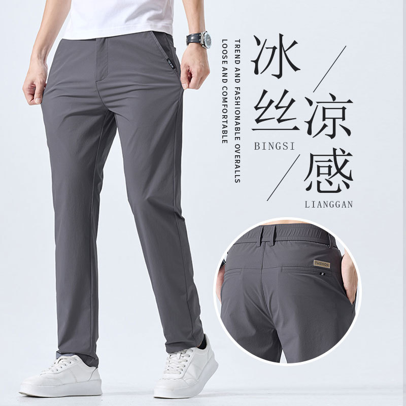 캐주얼 바지 남자 여름 얇은 스트레이트 느슨한 도구 비즈니스 바지 캐주얼 스포츠 아이스 실크 긴 바지 트렌디