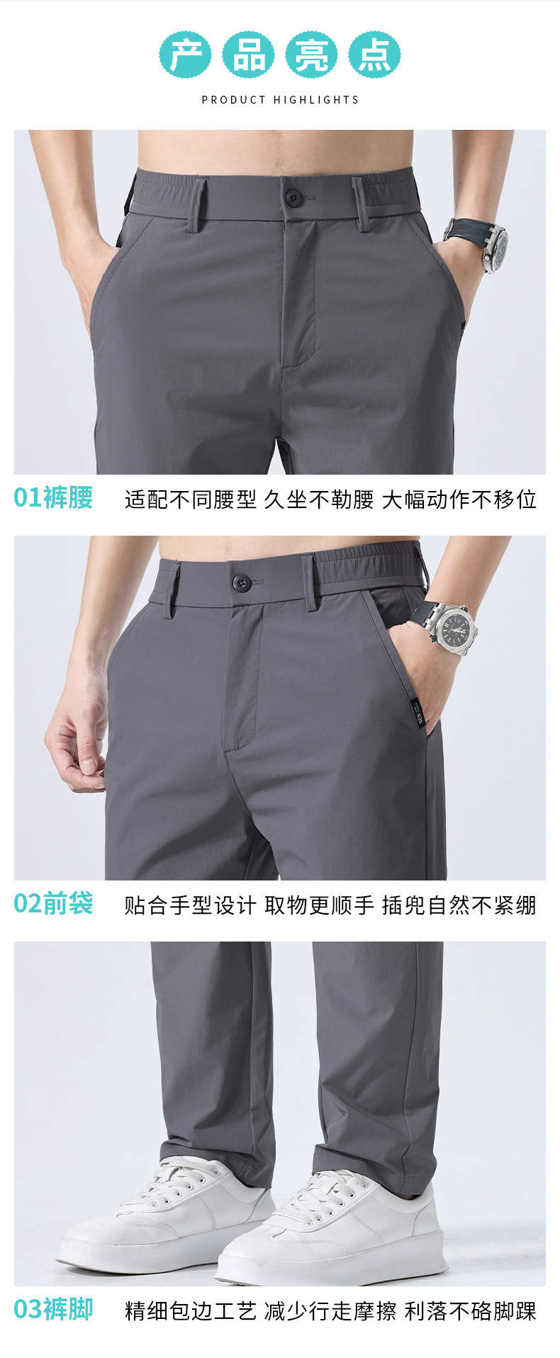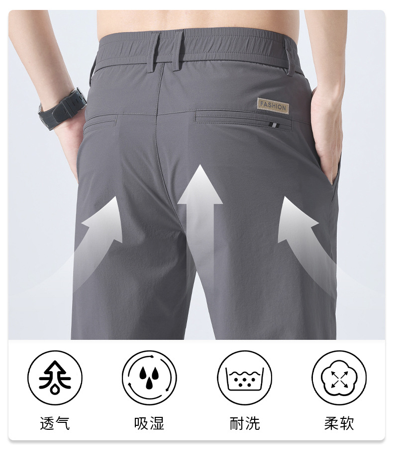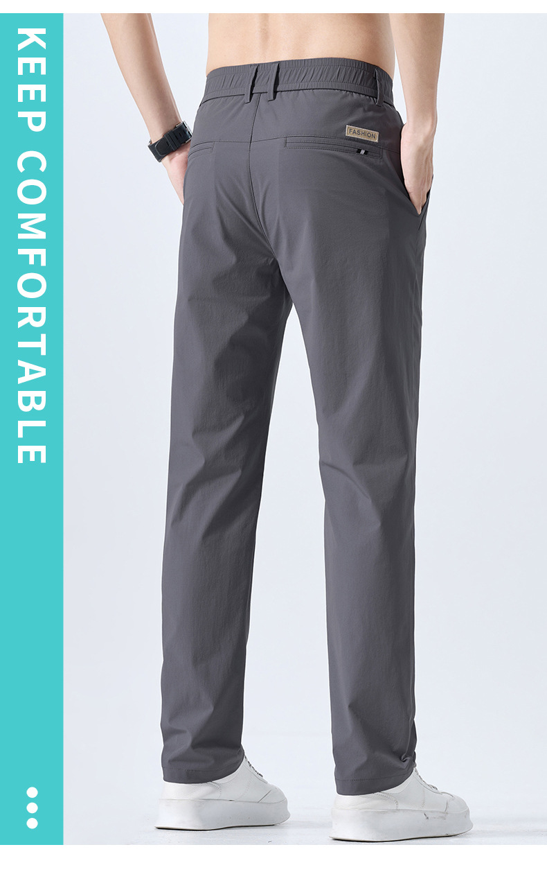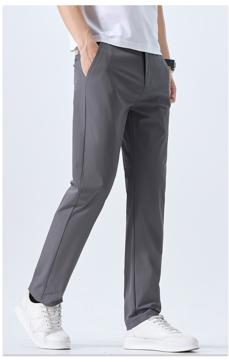 캐주얼 바지 남자 여름 얇은 스트레이트 느슨한 도구 비즈니스 바지 캐주얼 스포츠 아이스 실크 긴 바지 트렌디