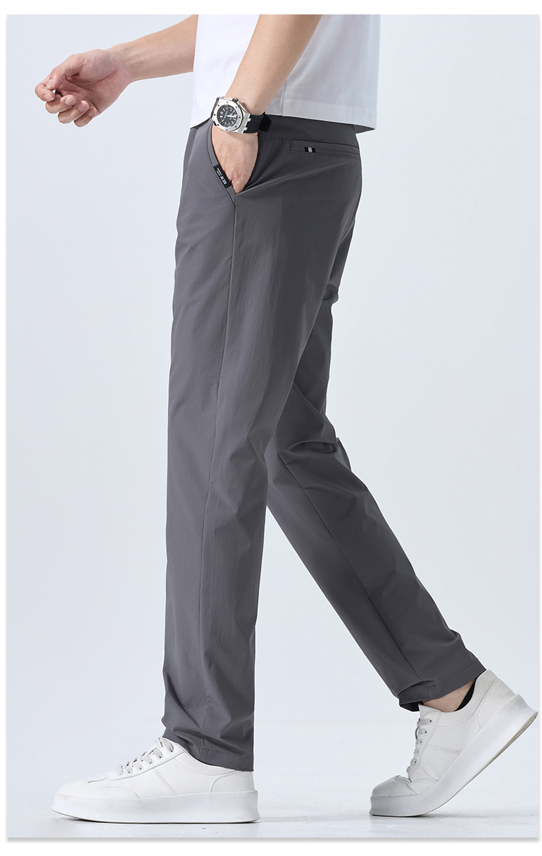 캐주얼 바지 남자 여름 얇은 스트레이트 느슨한 도구 비즈니스 바지 캐주얼 스포츠 아이스 실크 긴 바지 트렌디스토어 가기