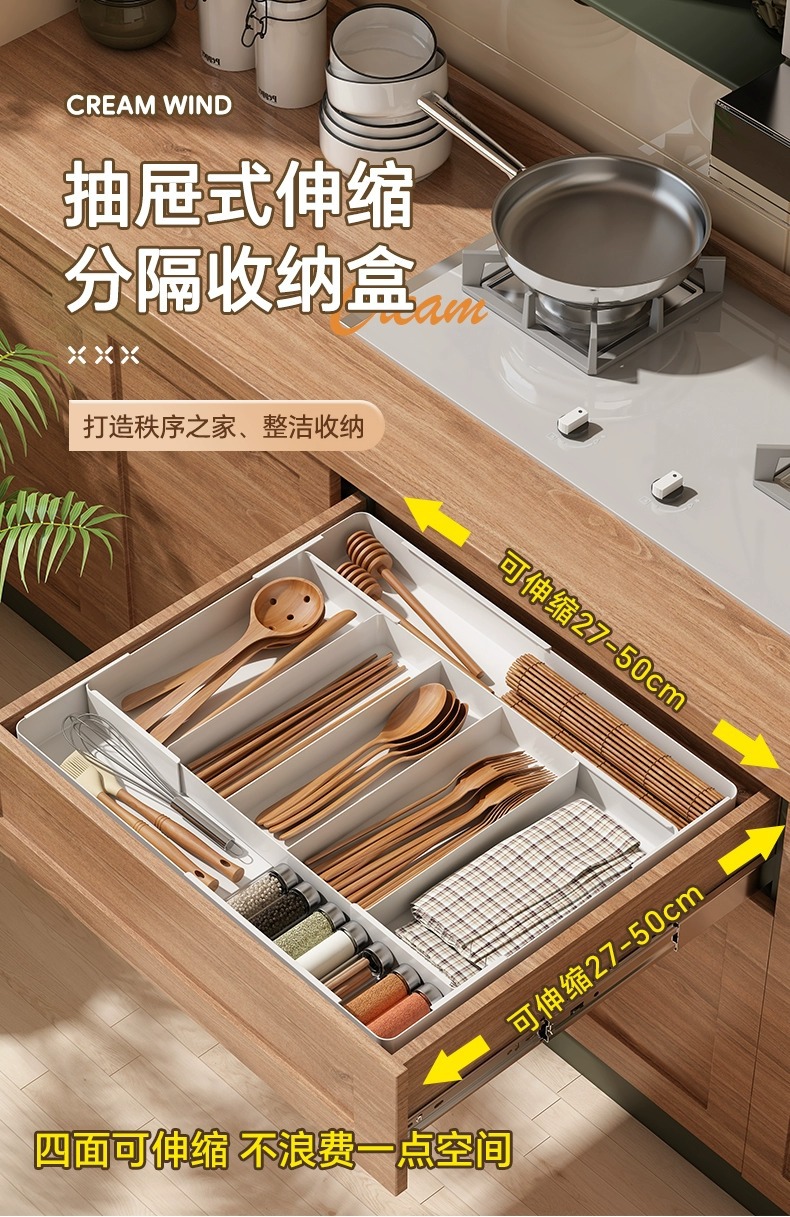 서랍 저장 상자 가정용 개폐식 파티션 내장 저장 상자 주방 식기 잡화 구획 분류 상자
