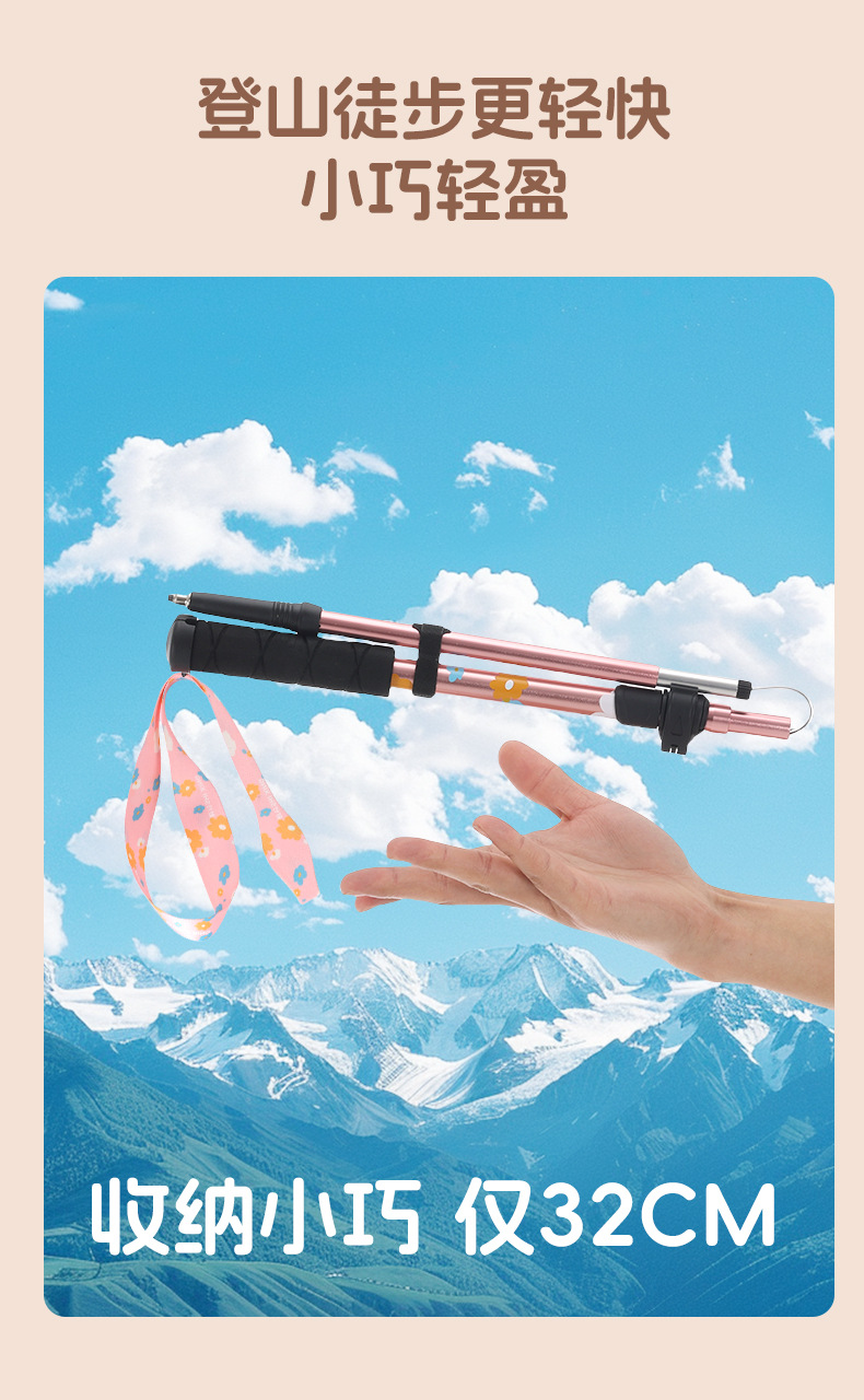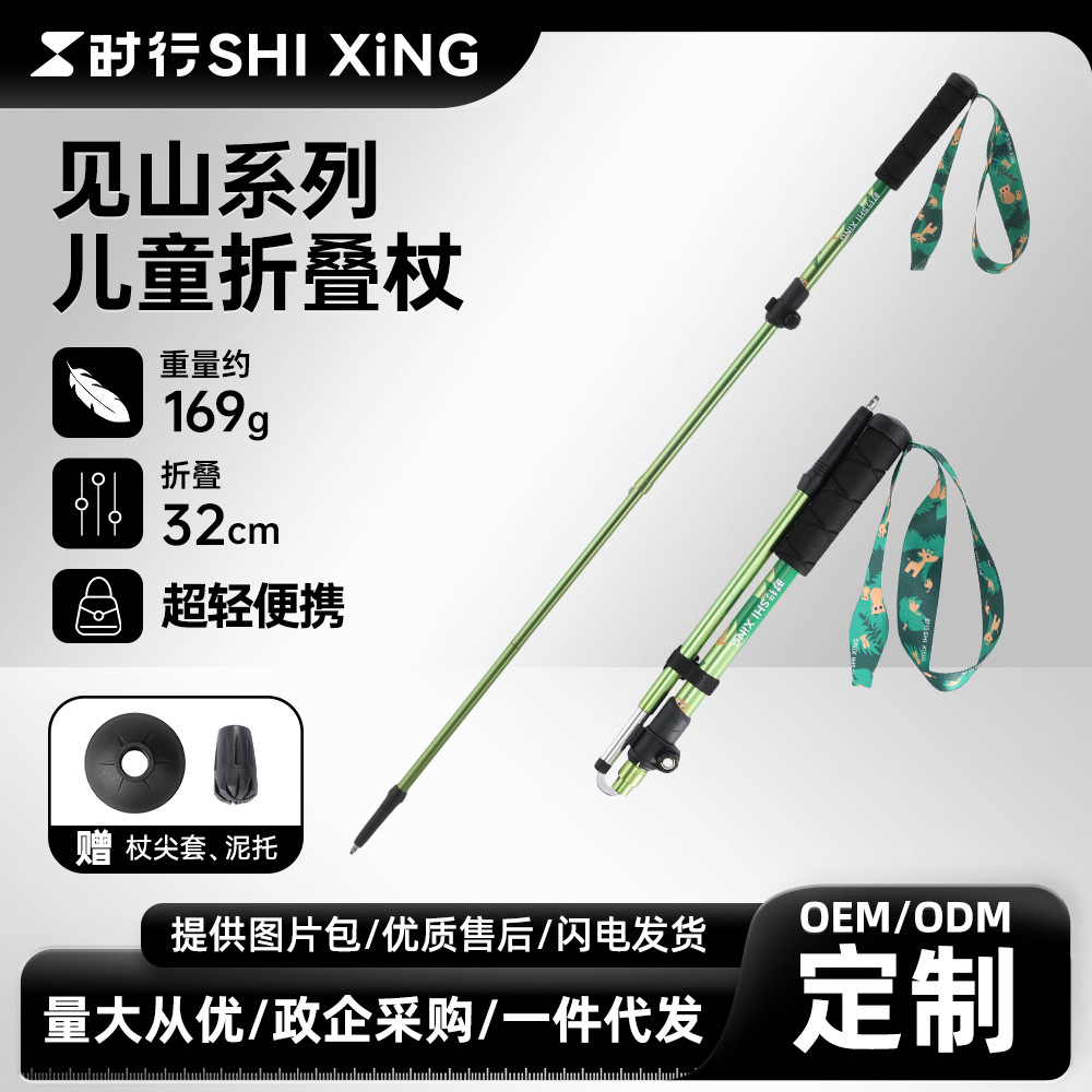 어린이용 등산 스틱, 접이식 지팡이, 알루미늄 합금 3단 접이식 초경량 휴대용 야외 하이킹 및 등산 장비