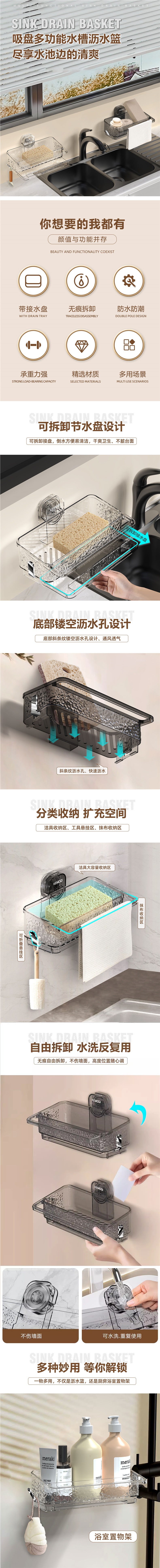 흡입 컵 다기능 싱크대 배수 바구니 주방 싱크대 식기 세척 브러시 배수 보관 랙 걸레 랙 벽걸이 형 보관 랙