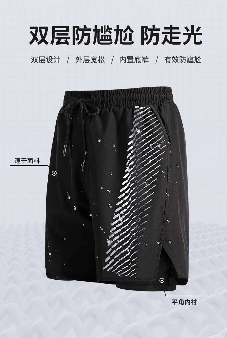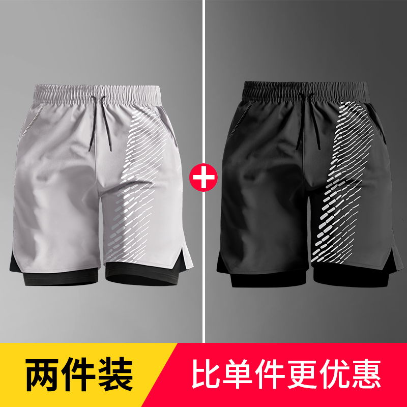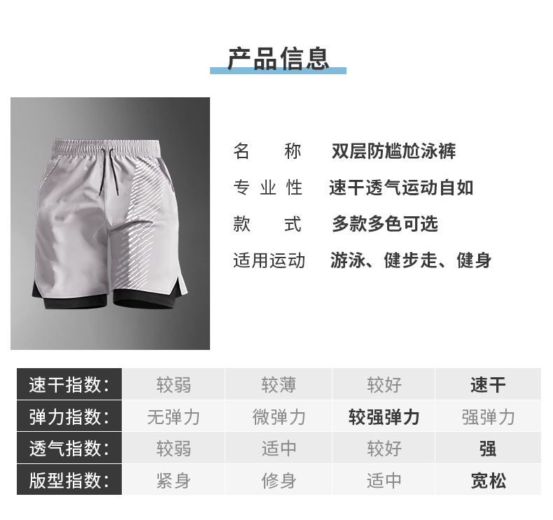남성용 수영복 세트, 당황스러운 방지, 이중 레이어, 5부 안감, 루즈하고 속건성, 비치 장비, 남성용 수영복 및 수영 모자스토어 가기