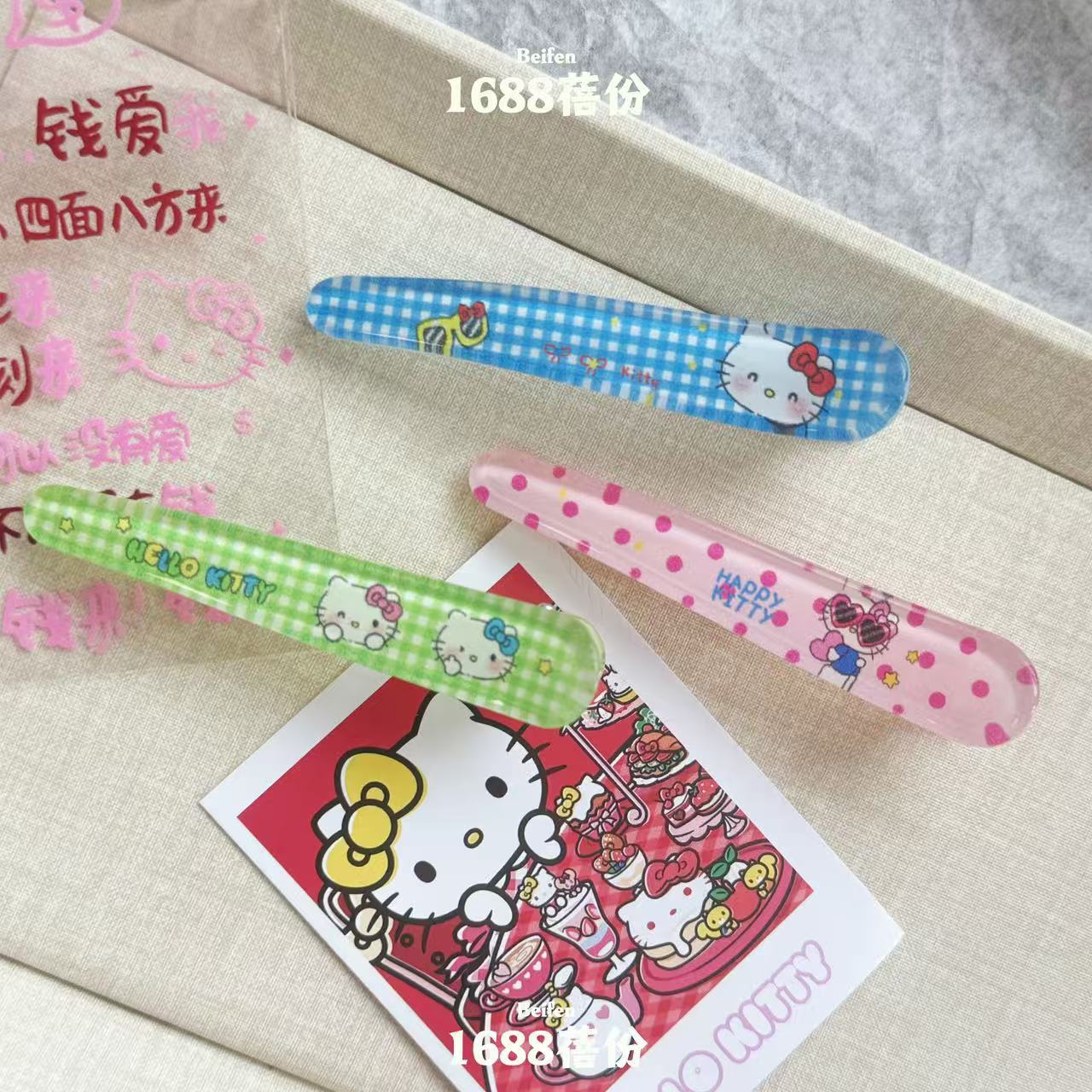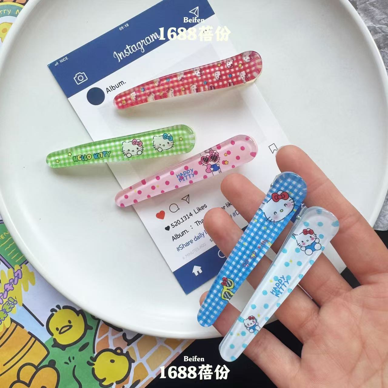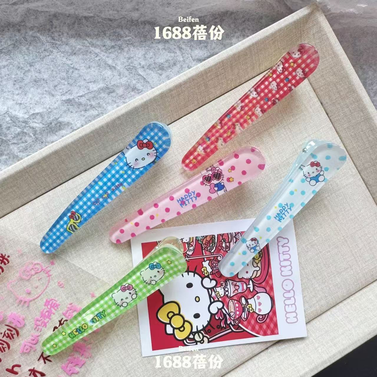 여름 투명 컬러 격자 무늬 KT 덕빌 클립 올 매치 소녀의 하트 뱅 클립 귀여운 만화 덕빌 클립 헤어핀 헤어 액세서리