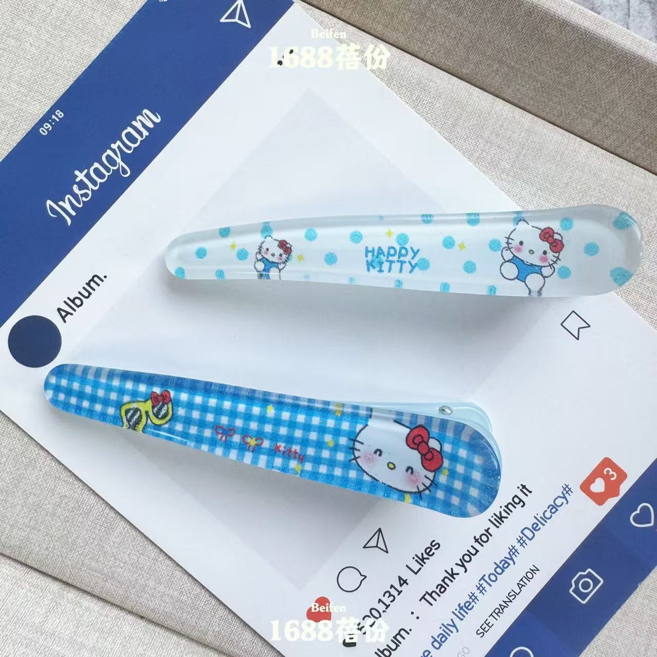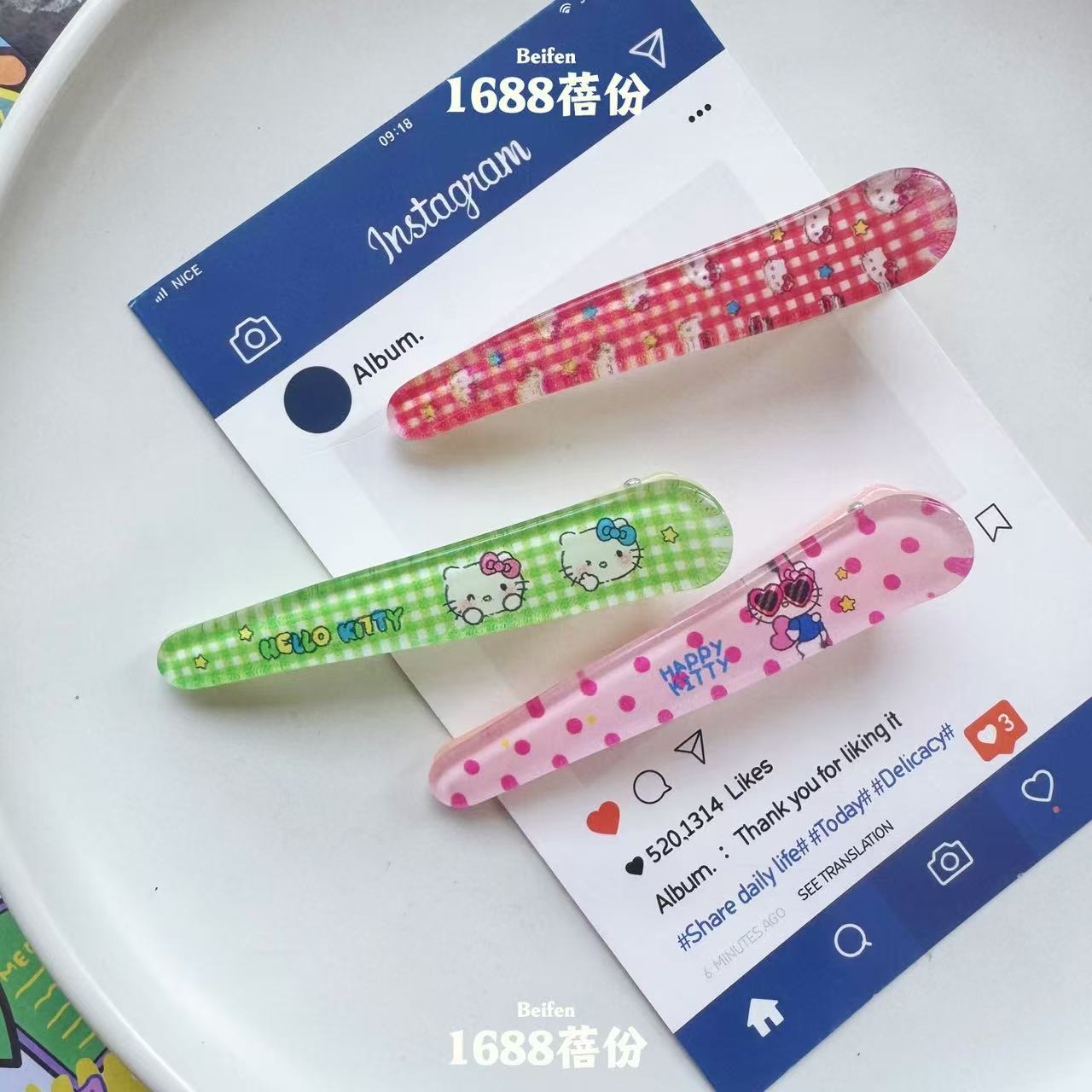 여름 투명 컬러 격자 무늬 KT 덕빌 클립 올 매치 소녀의 하트 뱅 클립 귀여운 만화 덕빌 클립 헤어핀 헤어 액세서리스토어 가기
