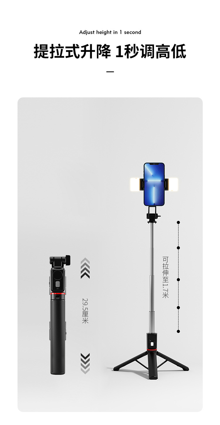 새로운 휴대 전화 셀카 스틱 삼각대 접이식 데스크탑 라이브 방송 스탠드 야외 휴대용 뷰티 블루투스 원격 제어 촬영