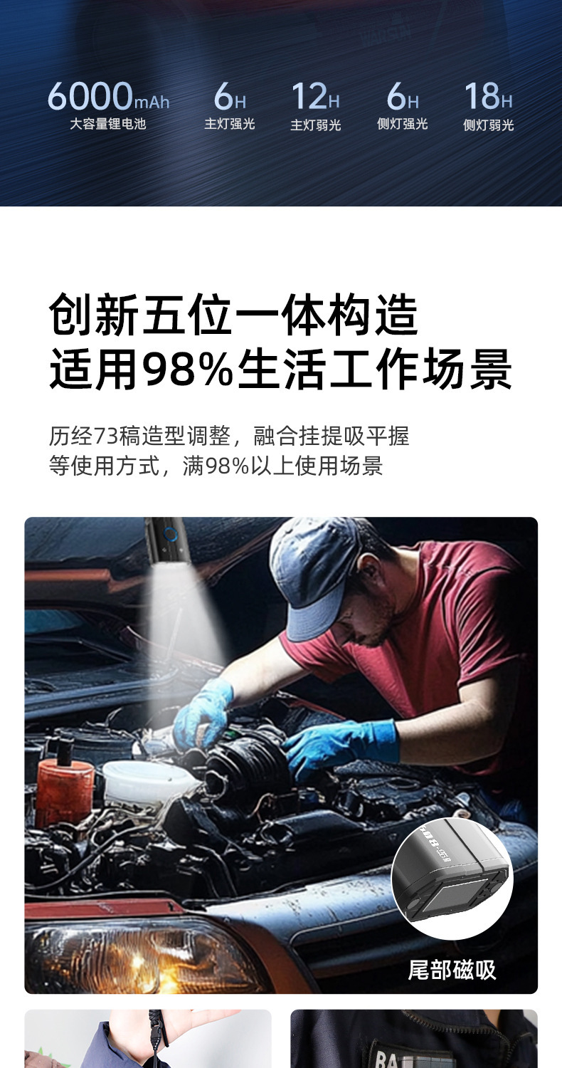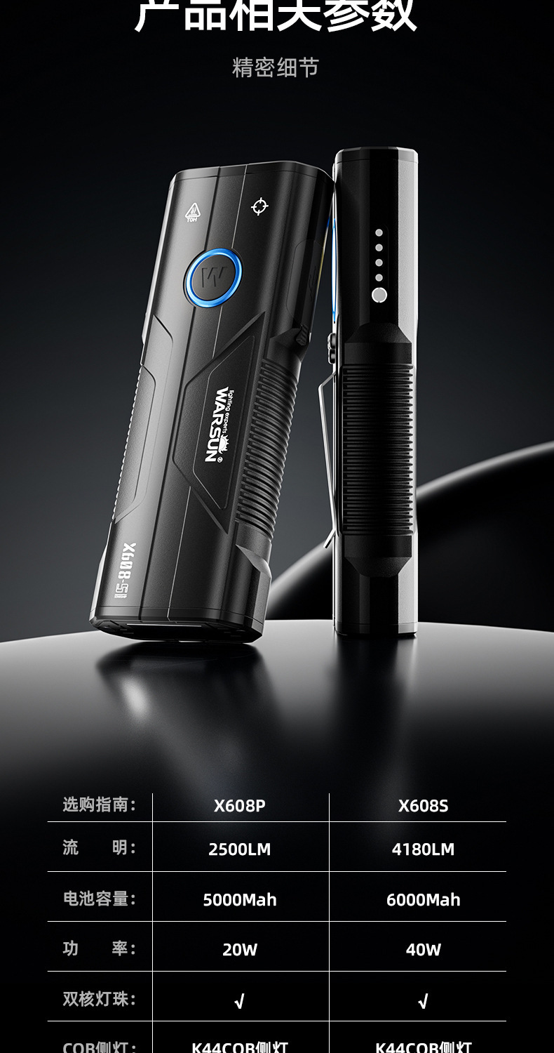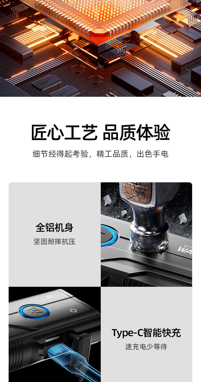 Volson 가정용 손전등 다기능 휴대용 미니 슈퍼 밝은 충전식 야외 장거리 작업 조명 X608S