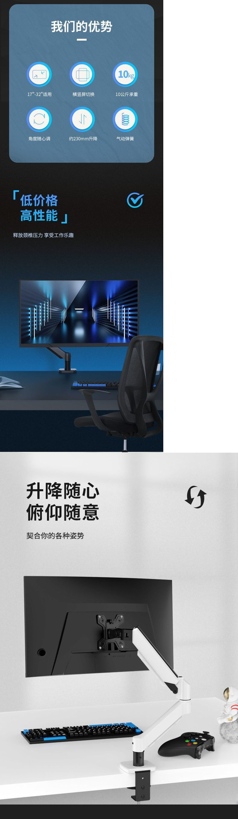32 인치 컴퓨터 모니터 브래킷 회전 가능한 리프팅 테이블 비 펀치 디스플레이 화면 캔틸레버 브래킷 기계 팔스토어 가기