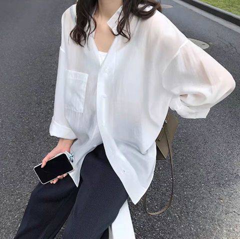 여성을위한 게으른 스타일 느슨한 슬림 태양 보호 셔츠 2025 여름 새로운 디자인 대형 작은 셔츠 재킷스토어 가기
