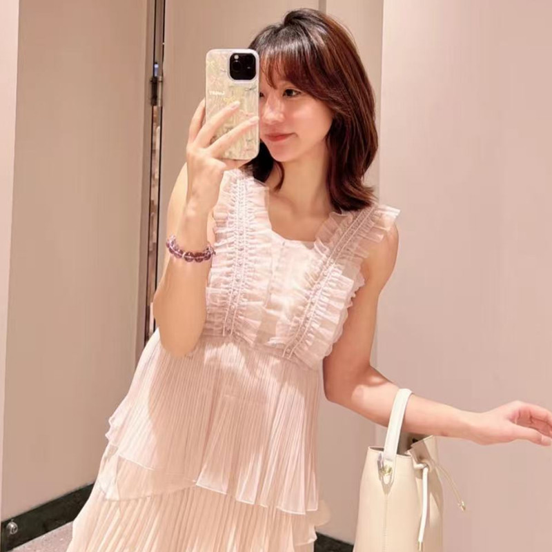 일본 S 홈 2025 여름 달콤한 Tulle Ruffled Pleated Camisole Chiffon 셔츠 탑 SWFB251174스토어 가기