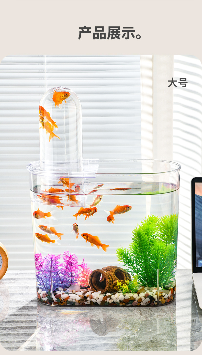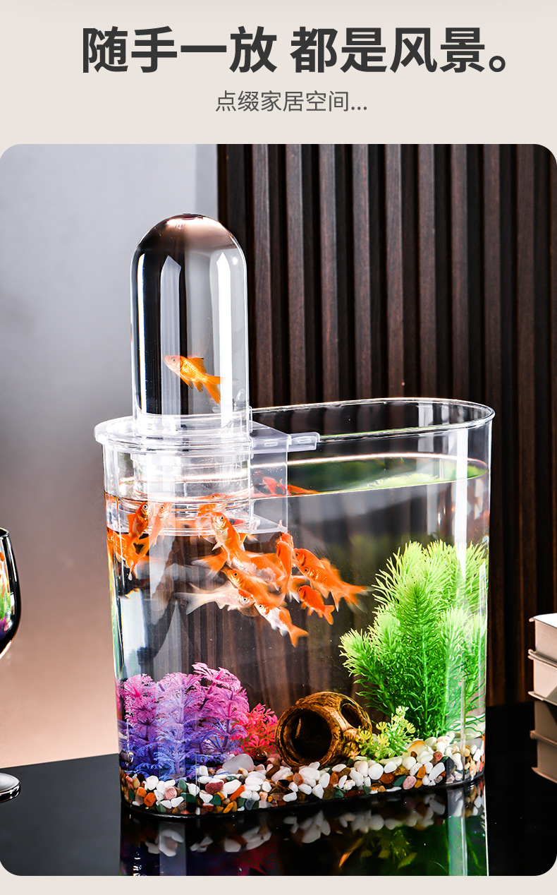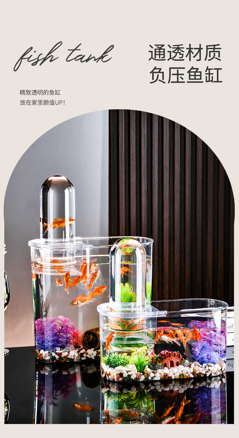 음압 수조, 공중에 뜨는 데스크탑, 소형 금붕어 수조, 거실 관상 수족관, 가정용 마이크로 조경 생태 수조스토어 가기
